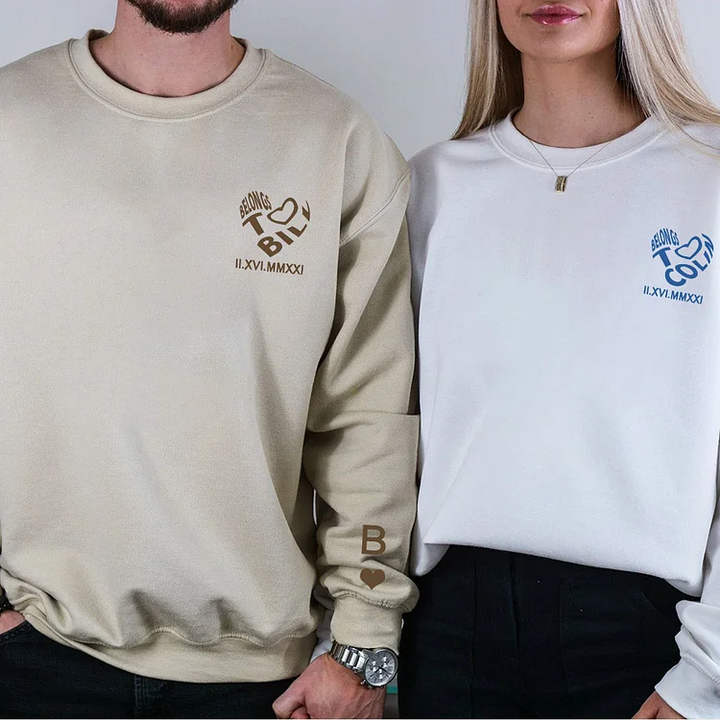 Belongs To Name, Custom Heart Design, Couple Unisex Sweater, Holiday Gift, Birthday Gift, Anniversary Gift