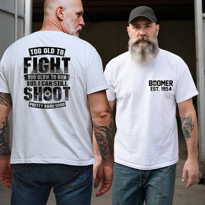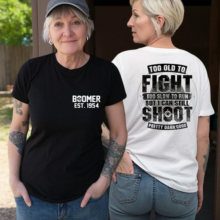BOOMER T-shirt - Too Old To Fight Too Slow To Run But I Can Still Shoot Pretty Darn Good T-shirt - Unisex Hoodie - Custom Year Of Birth Sweatshirt