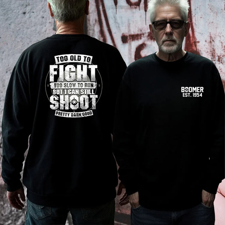 Custom Year Of Birth BOOMER T-shirt, Too Old To Fight Too Slow To Run But I Can Still Shoot Pretty Darn Good Sweatshirt