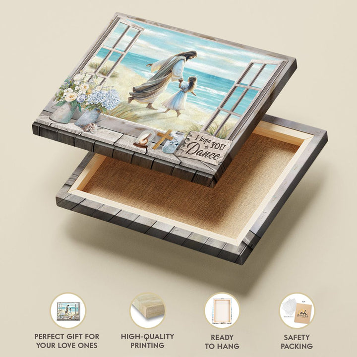 Discover the perfect blend of inspiration and artistry with our “I Hope You Dance” Christian Art Canvas Print, designed especially for women of faith. This beautiful canvas features an uplifting depiction of Jesus walking hand-in-hand with a child along a serene beach, framed by a charming window. It serves as a daily reminder of love, faith, and the joy of following your heart’s path. Whether you’re looking to enhance your home décor or seeking a meaningful gift, this canvas print is sure to inspire and uplift.