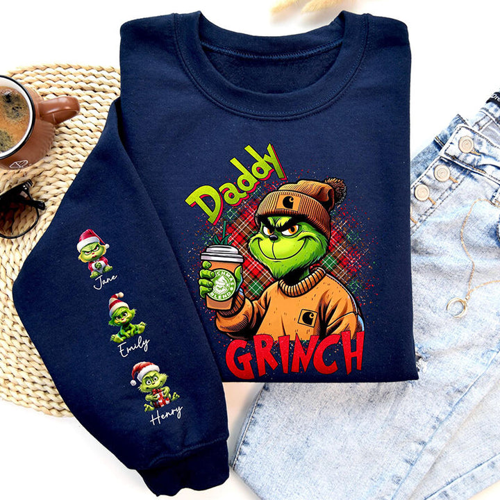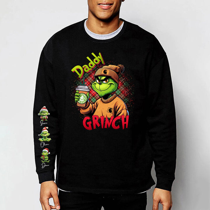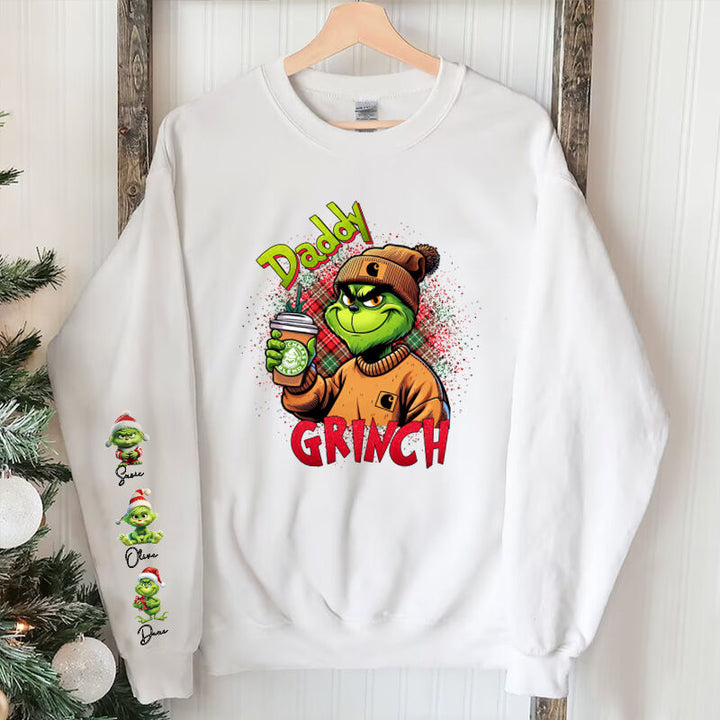 Christmas Sweatshirt Daddy Grinch with Custom Kid Names Pattern Attractive Christmas Gift for Dear Dad