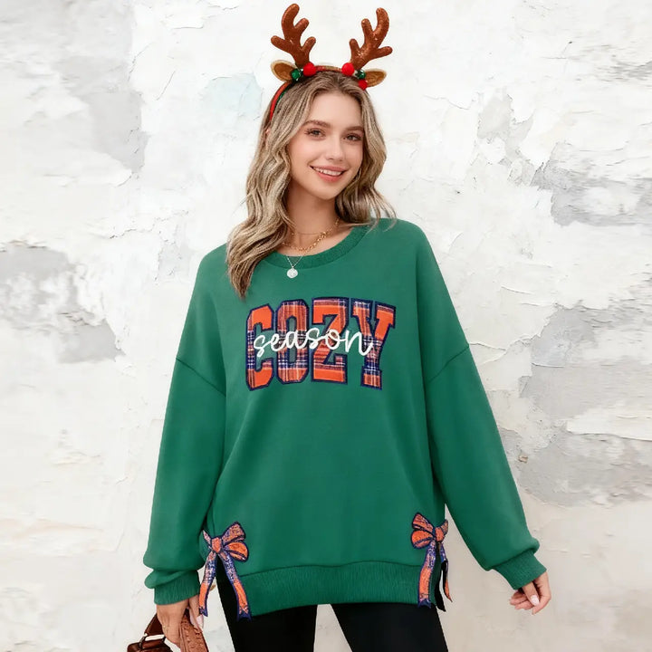 Cozy Season Side Bow Cut-Out Shirt , Plaid Fall Pullover , Cozy Season , Bow Cut-Out Shirt