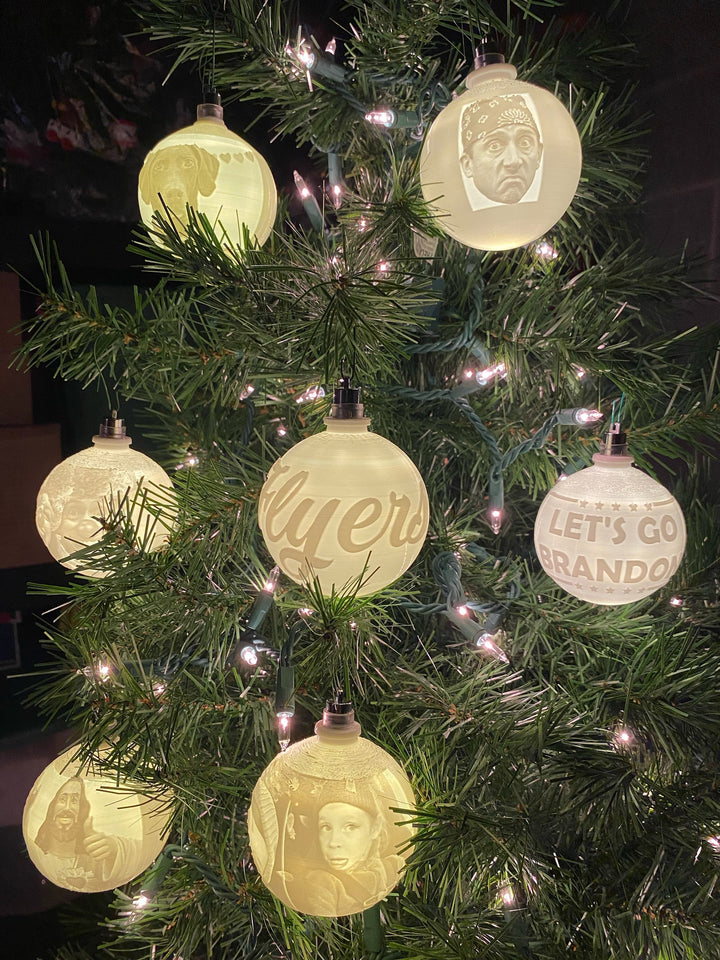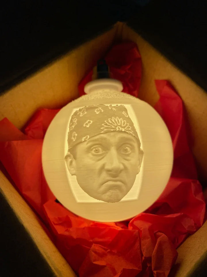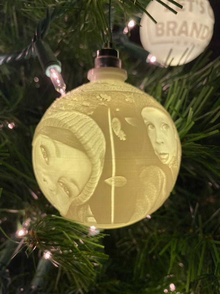 This custom 3D printed personalized Christmas warm white LED lighting decorative ball, with its unique design and warm lighting effect, will become an indispensable holiday decoration in your home. Whether it is a Christmas gift or a home decoration, it can bring you a full festive atmosphere and good memories!