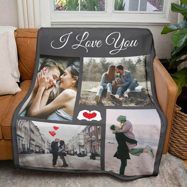 Custom Blanket With 4 Photos Personalized Picture Throw Blanket