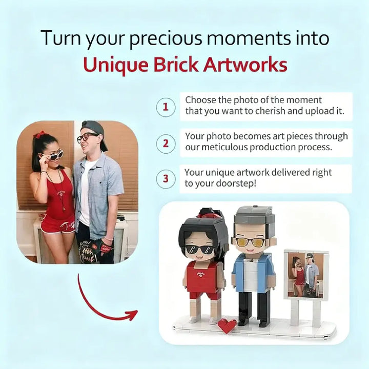 We've transformed the classic joy of building into the most meaningful gift you'll ever give. Our Custom Brick Set takes your favorite photo and recreates it as an incredible, buildable work of art - complete with a personalized minifigure that makes your memory truly come alive!