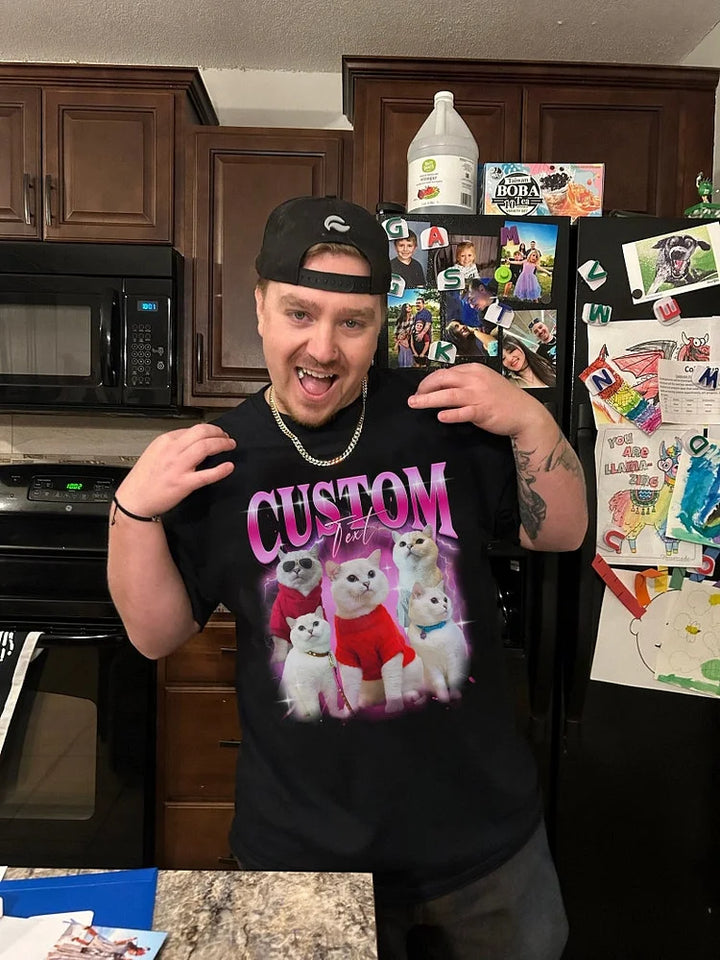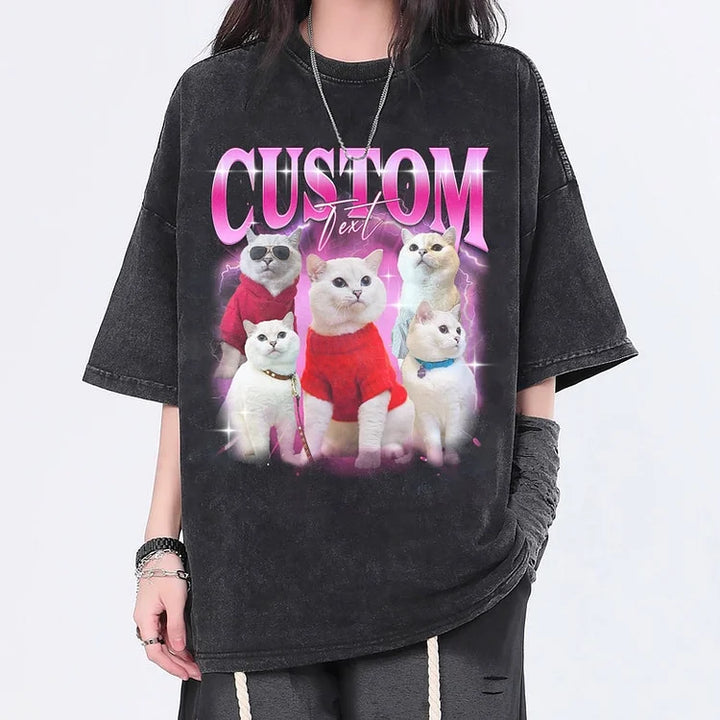 Custom Cat Dog Pet Vintage Unisex T-Shirt, Personalize Bootleg Retro 90's Tee Hoodie Sweatshirt