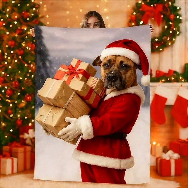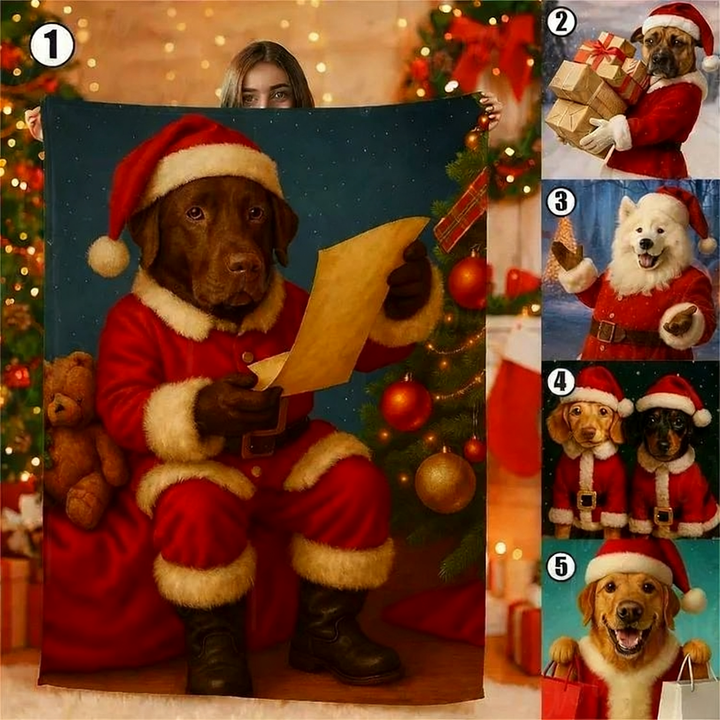šIntroducing our cozy Christmas-themed blanket, starring two adorable dogs all dressed up in festive Santa Claus outfits! Woven with soft, skin-friendly fabric that feels gentle against every touch, it features a vivid print of the pups set against a magical snowy, starry backdropābringing the warmth of the holiday season right into your hands. Whether you drape it over the living room sofa, spread it on your bed for extra coziness, or wrap yourself in it while sipping hot cocoa by the fireplace, it instantly fills any space with Christmas cheer and snug comfort.