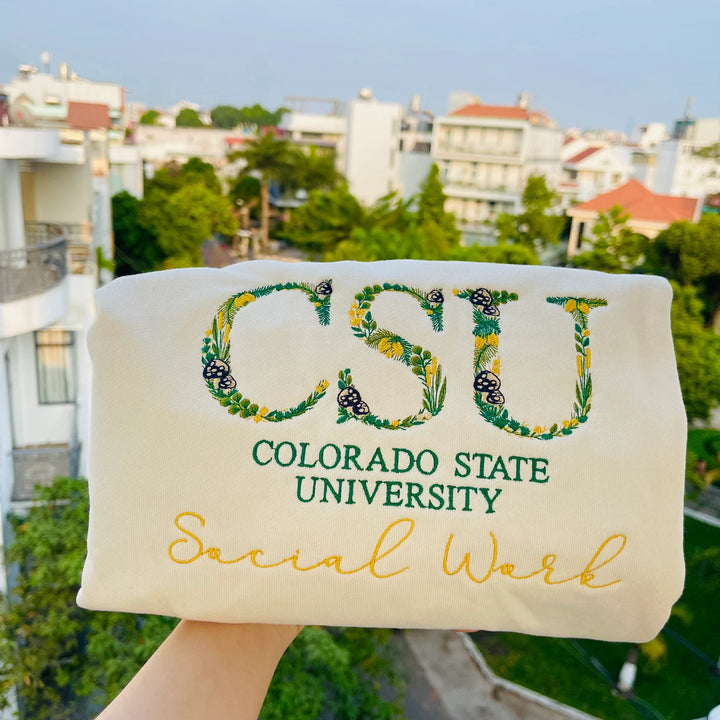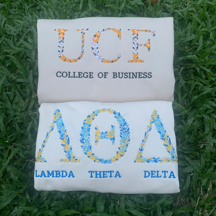 Show off your school pride in style with our Custom College Floral Letter Embroidered Sweatshirt. This cozy and fashionable sweatshirt combines the timeless appeal of floral embroidery with the bold spirit of your college, making it a cherished addition for students, alumni, and fans alike.
