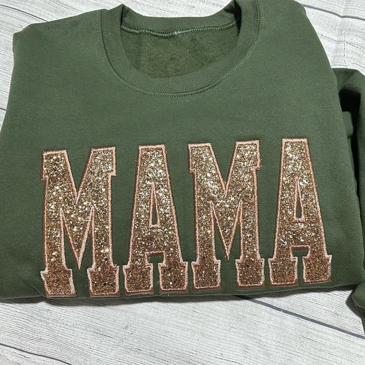 Custom Embroidered Applique Glitter Mama Sweatshirt - Gift for Mom
