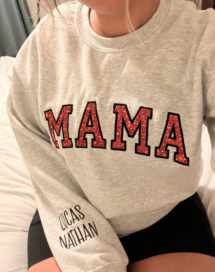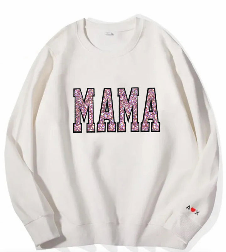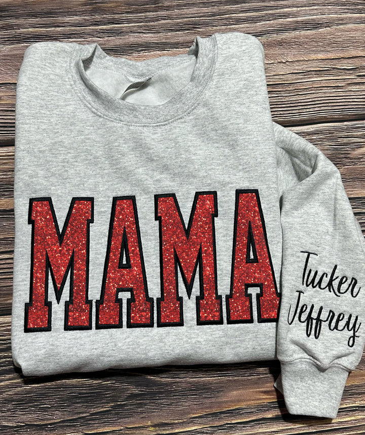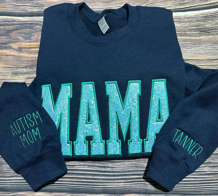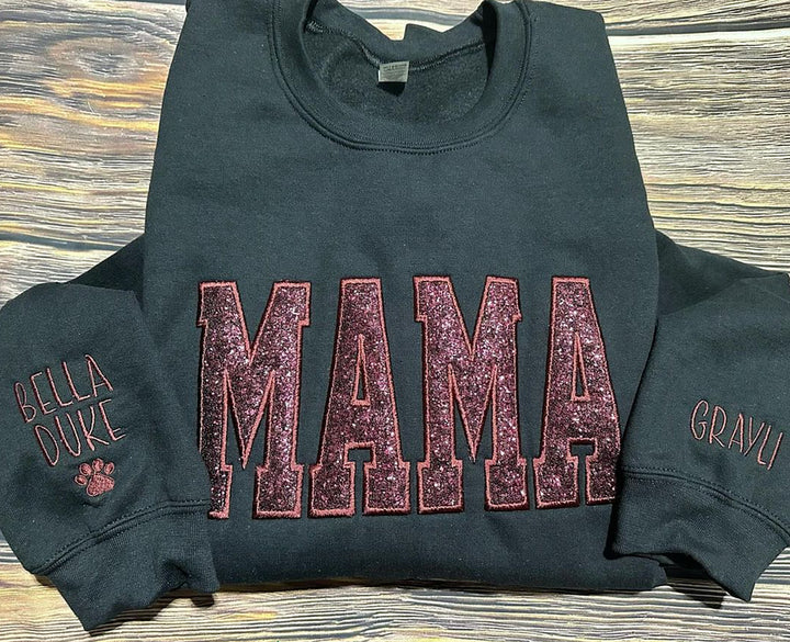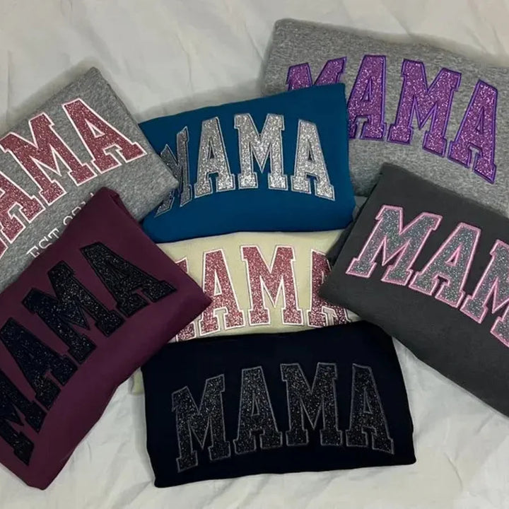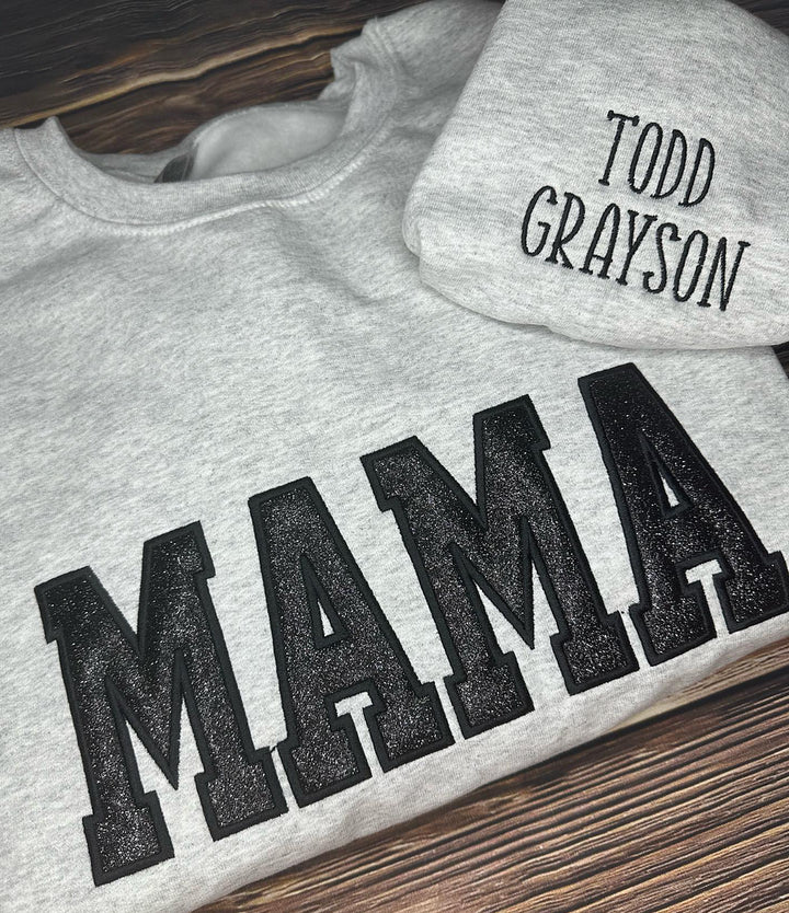 Custom Embroidered Applique Glitter Mama Sweatshirt - Gift for Mom