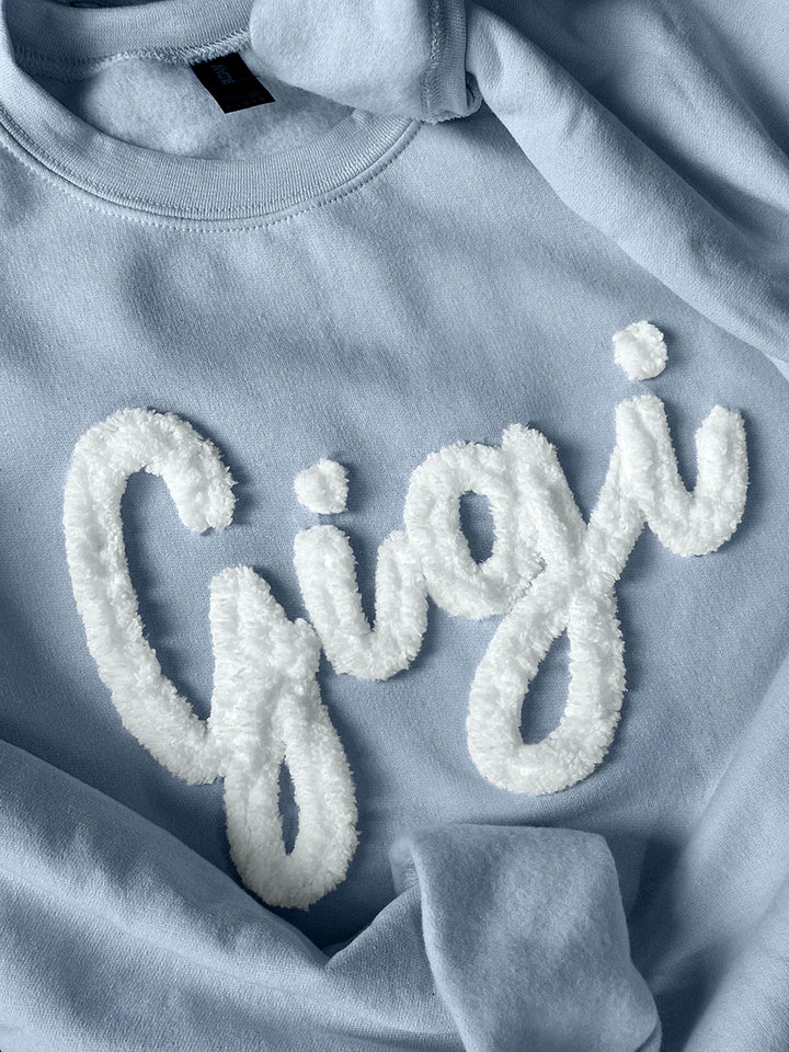 Custom Embroidered Gigi Chenille Yarn Sweatshirt ― The Ultimate Christmas Gift for Mom