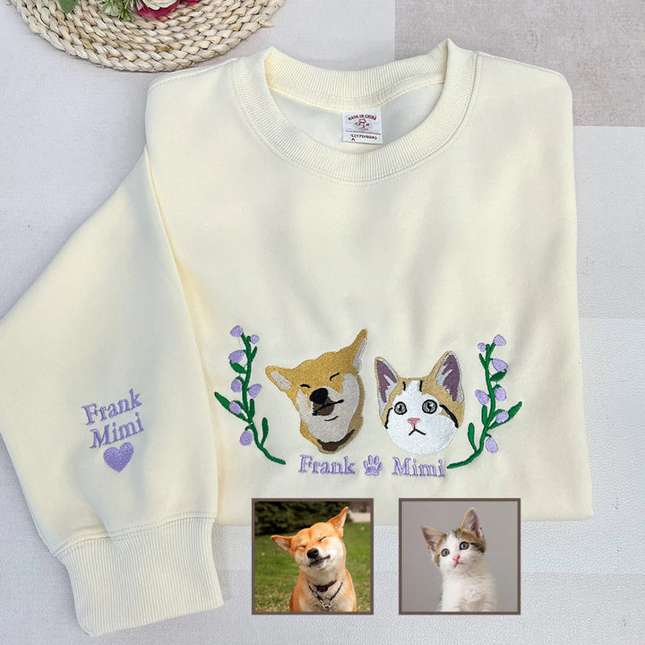 🐱Custom Embroidered Hoodie/Sweatshirt With Pet Portrait Flower🐶