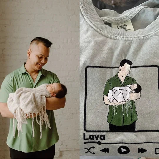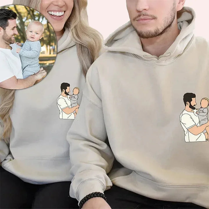 Give your dad a deeply personalized gift with our custom embroidered sweatshirt. Featuring a detailed portrait of father and son, each piece is carefully crafted to reflect the special bond you share. The added color frame brings a vibrant touch, making this sweatshirt a meaningful and lasting gift for Dad.