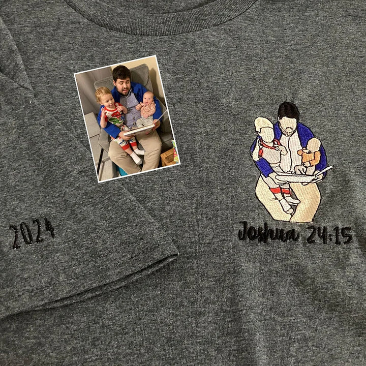 Custom Embroidered Photo Portrait Sweatshirt For Dad,Papa,Father