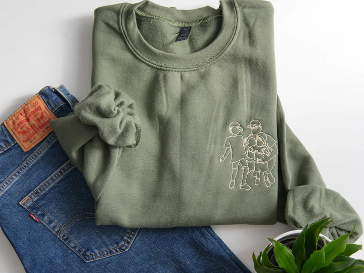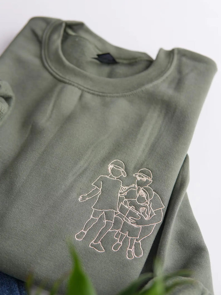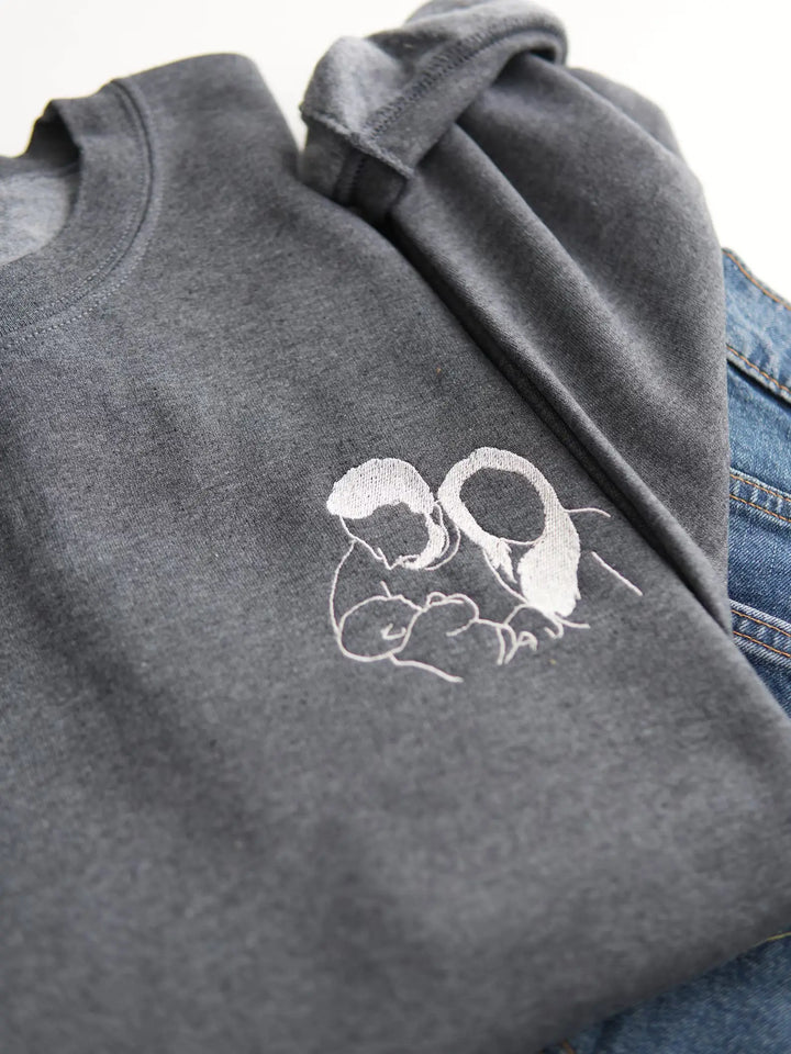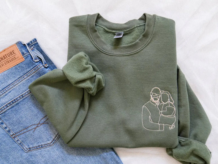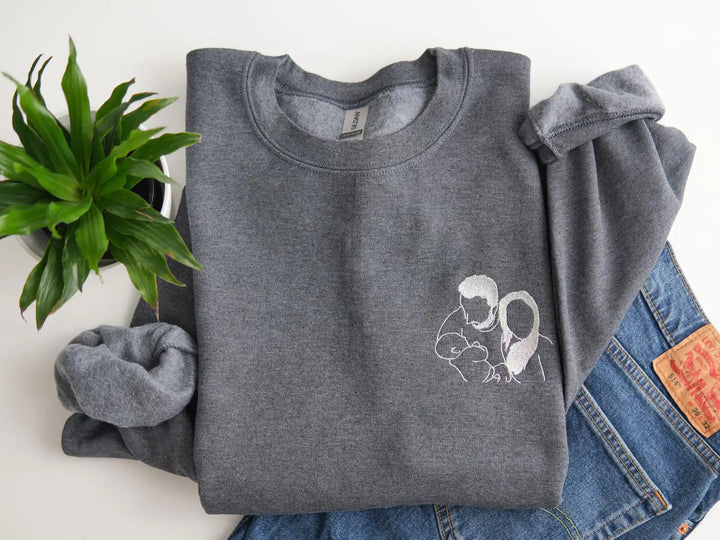 Custom Embroidered Photo Portrait Sweatshirt - Personalized Family Shirt - Gift for Dad/Mom