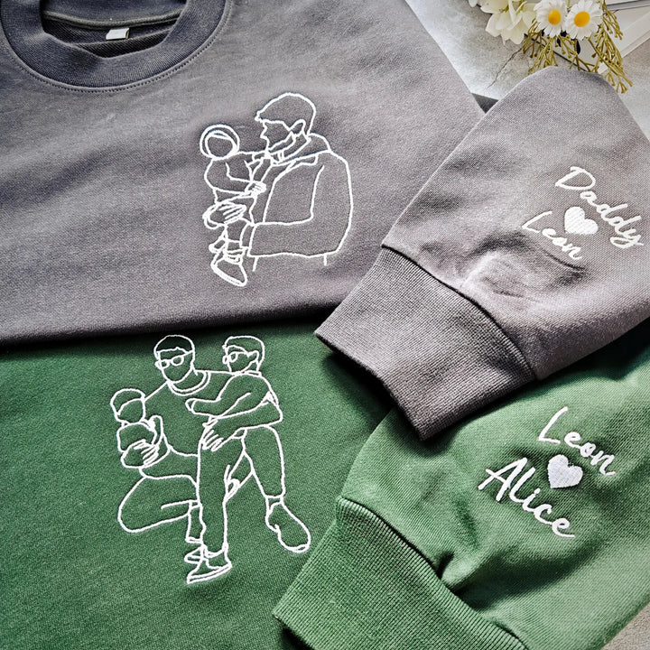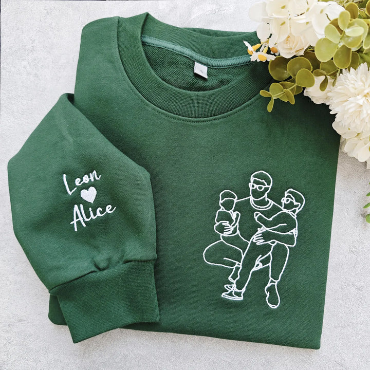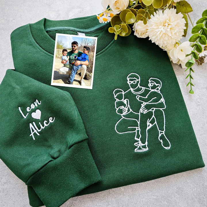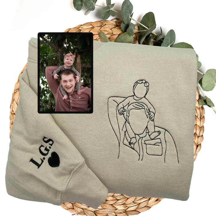 Custom Embroidered Photo Portrait Sweatshirt - Personalized Family Shirt - Gift for Dad/Mom