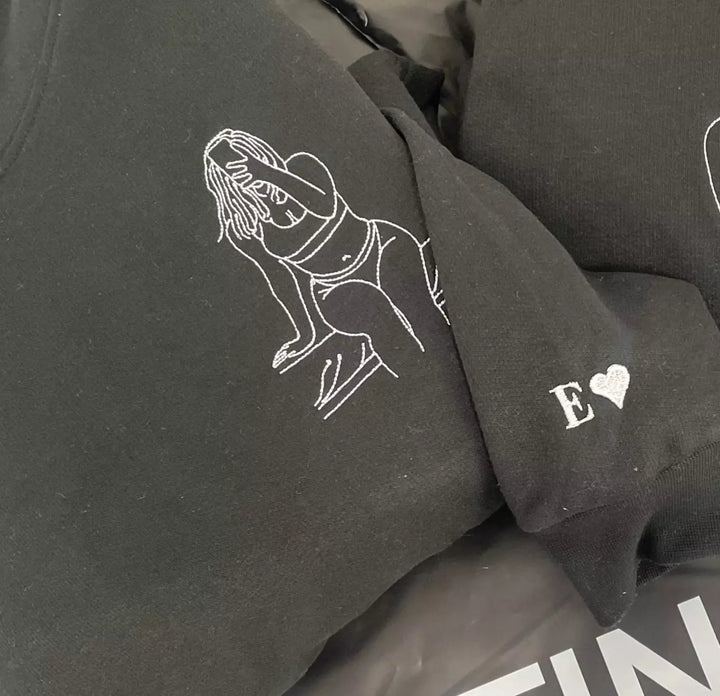 Custom Embroidered spicy Portrait Sweatshirt, Custom Couple Portrait, Spicy Sweatshirt with Photo, Gift For Boyfriend,Spicy hoodie