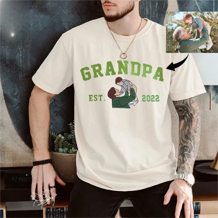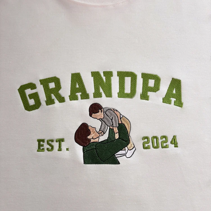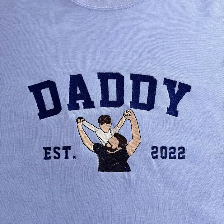 Custom Embroidered Sweatshirt with Photo – Personalized Dad Mama Shirt, Family Name Sweater,Custom Parent Photo Shirt, Est. Year Sweater