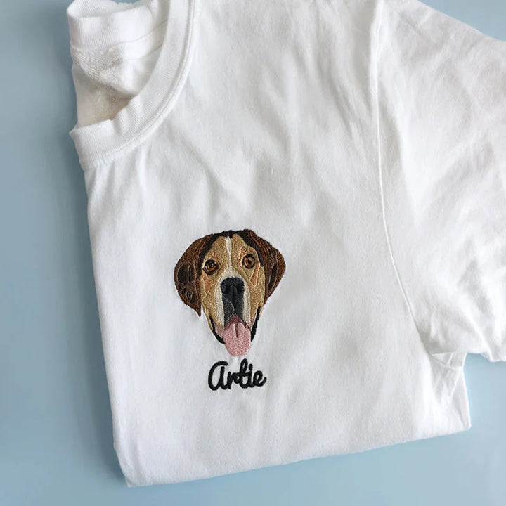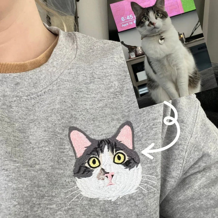 Presentation of our embroidered photo thread sweatshirts for personalized pets!