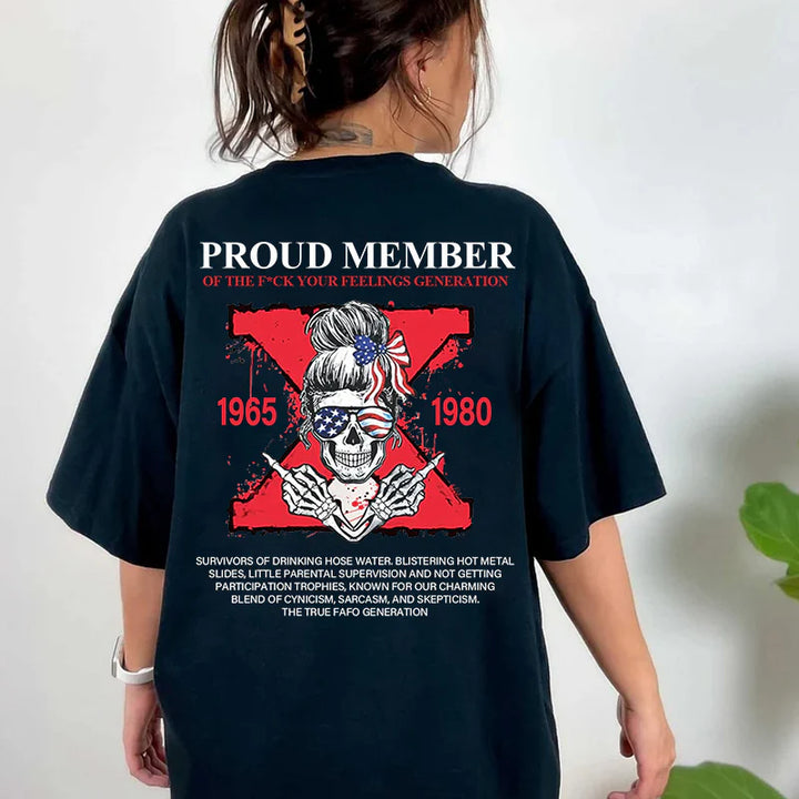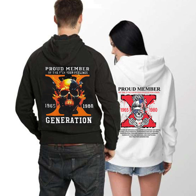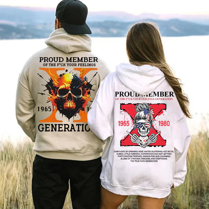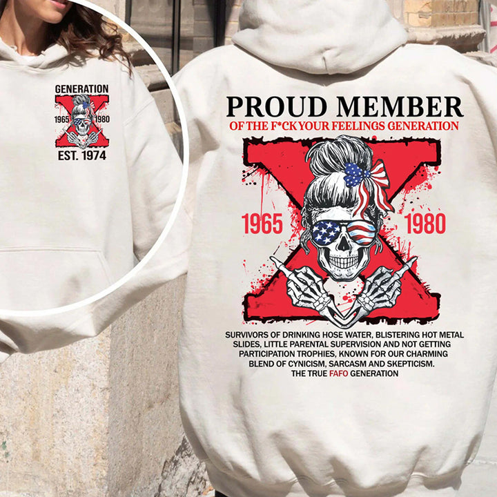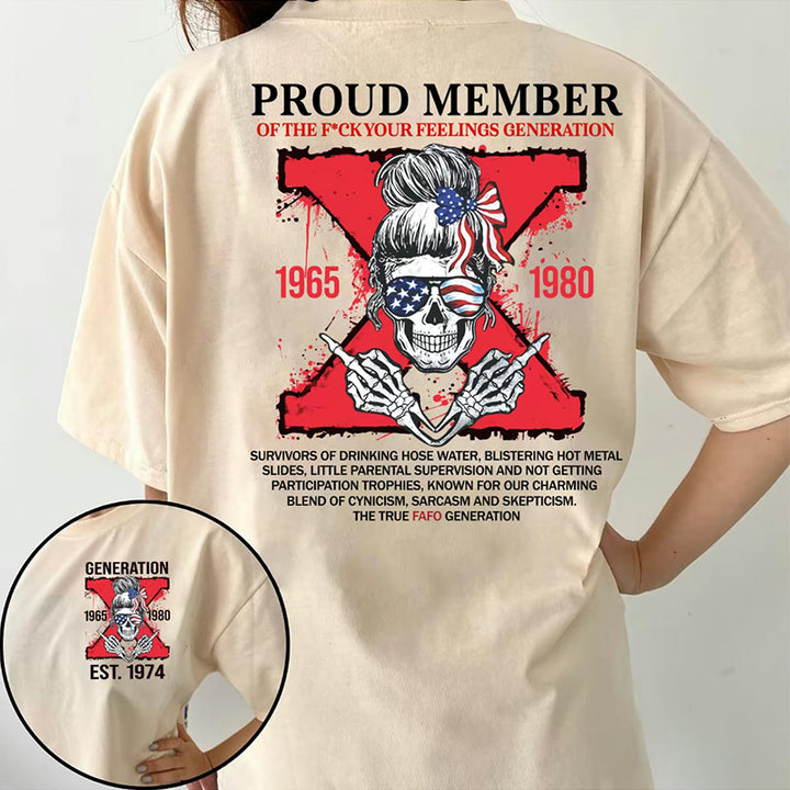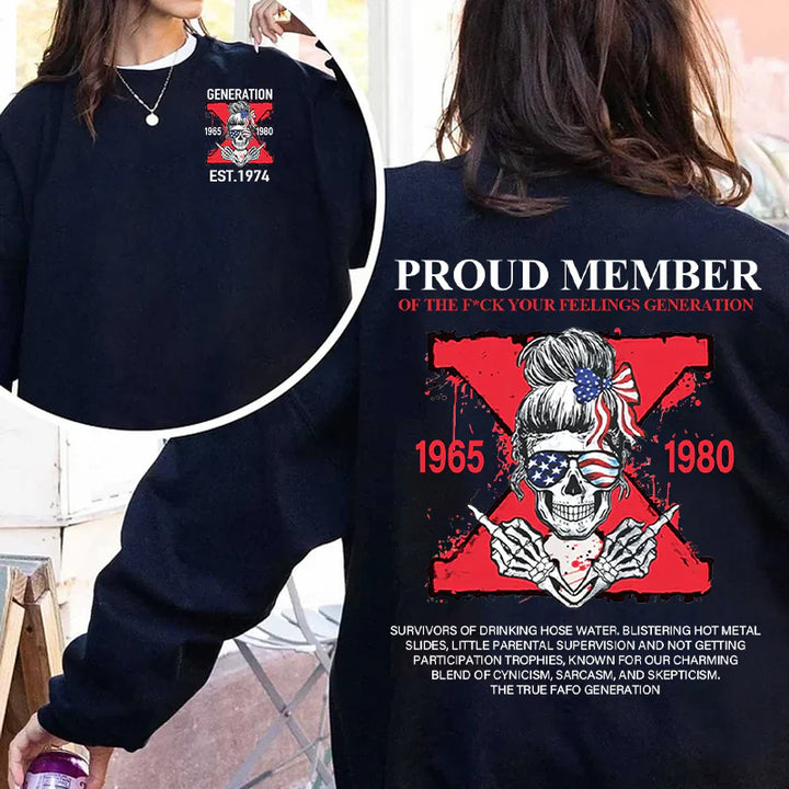 Custom Est Year Gen X Flaming Skull Proud Member Fuck Your Feelings Generation Sweatshirt/T-shirt