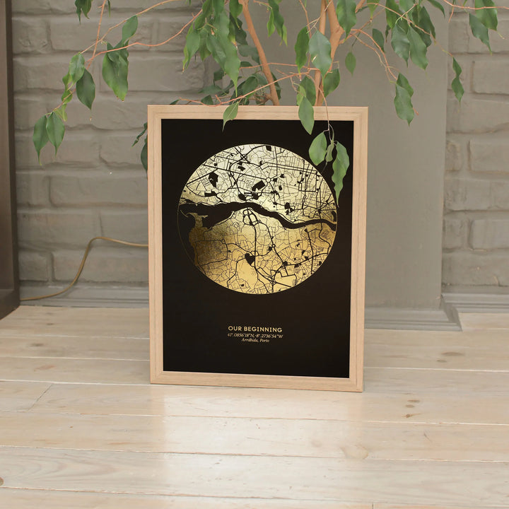 Custom Foil Map Print - Personalized Anniversary Gift, Wedding, Long Distance Relationship Keepsake Framed Art
