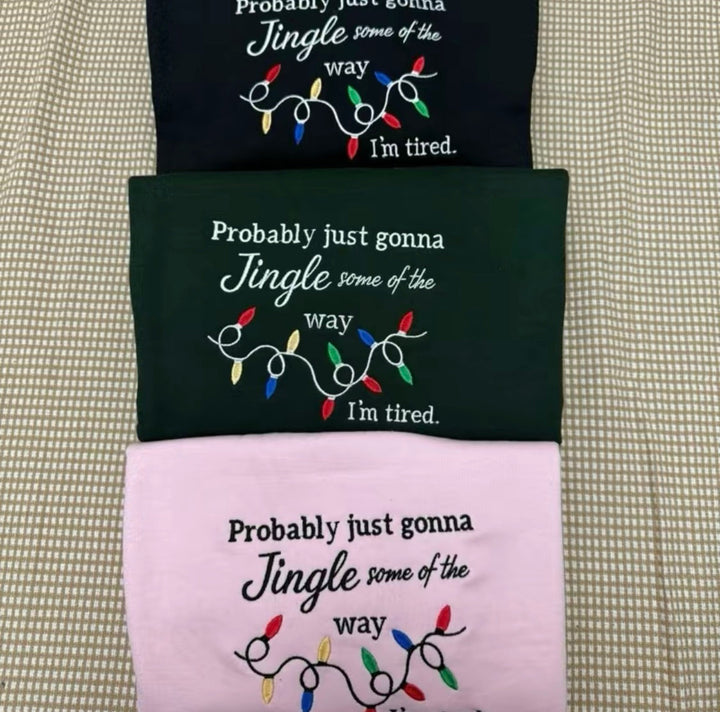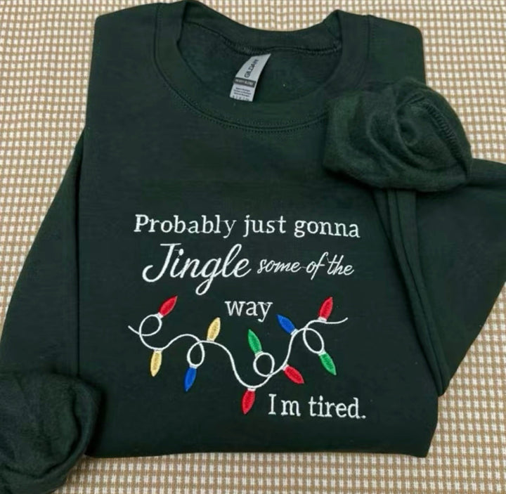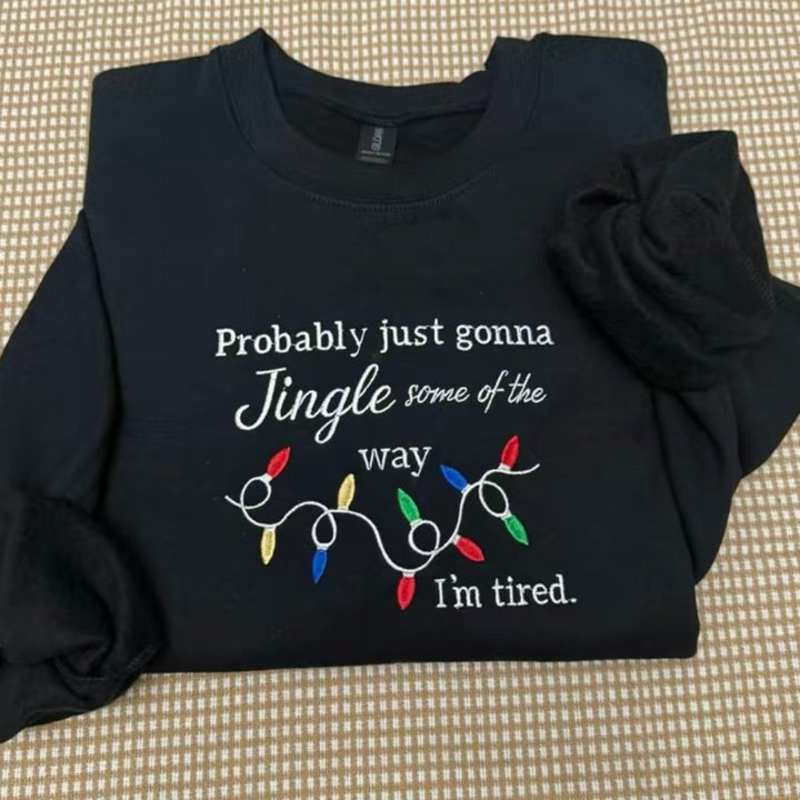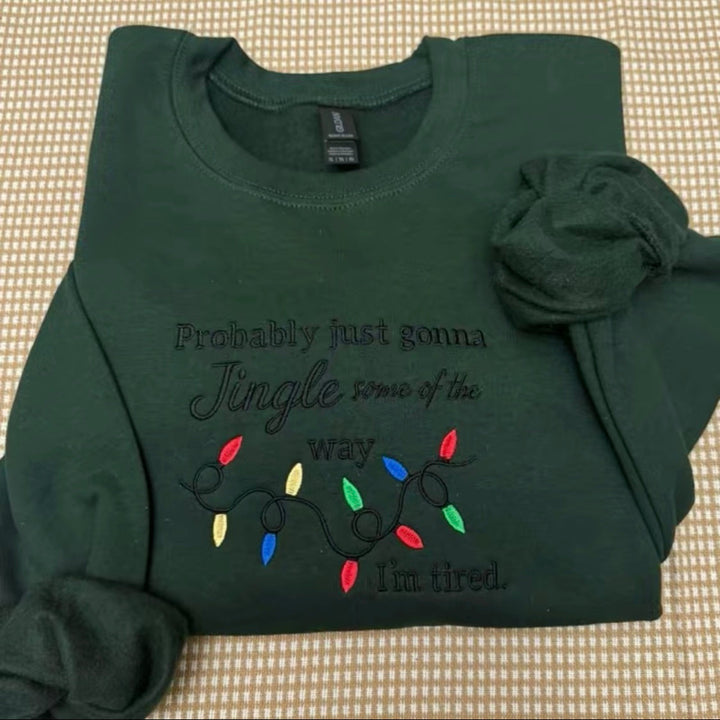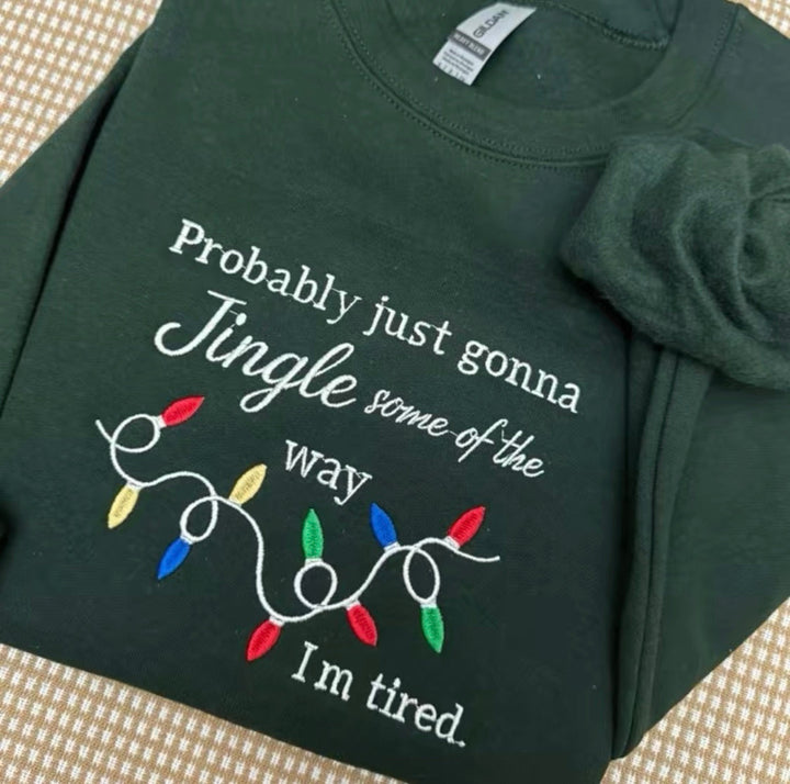 Custom Funny Christmas Embroidered Sweatshirt - Probably just gonna jingle some of the way - I m tired
