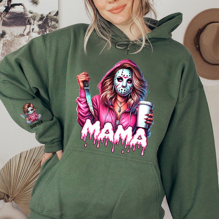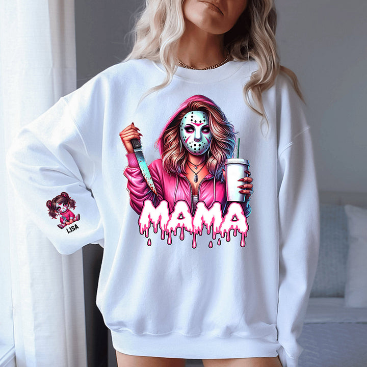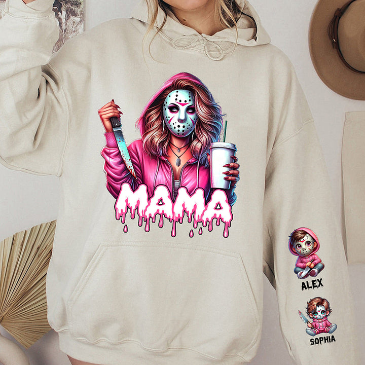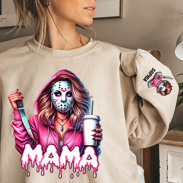 Custom Halloween MAMA Sweatshirt with Kid's Names on the Sleeve