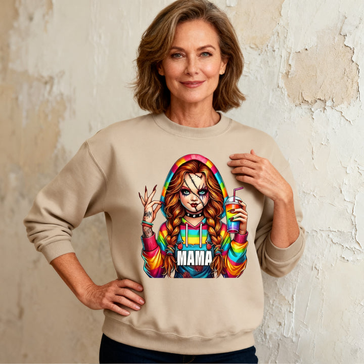 Custom Horror MAMA Sweatshirt with Kid's Names on the Sleeve