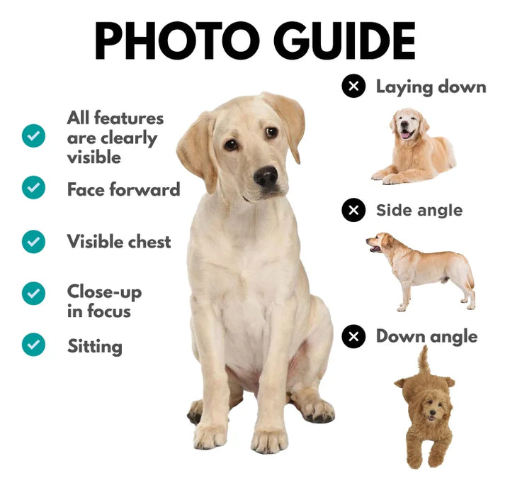 Upload your pet's photo and enter the text you'd like. Runs true to size ( order up a size or two if you would like a more looser fit )