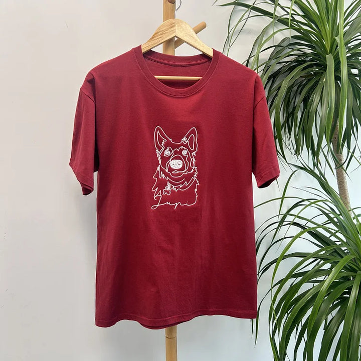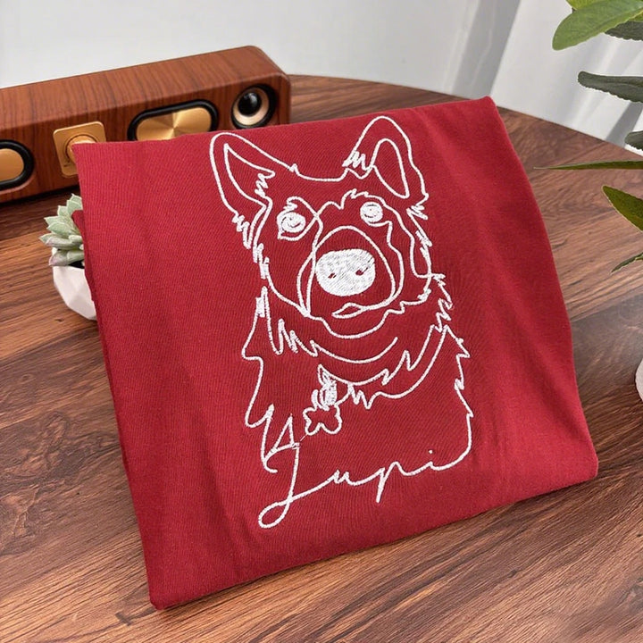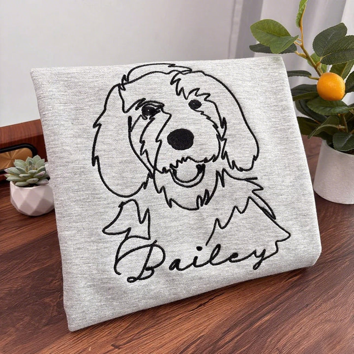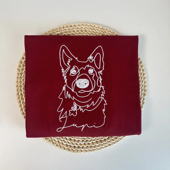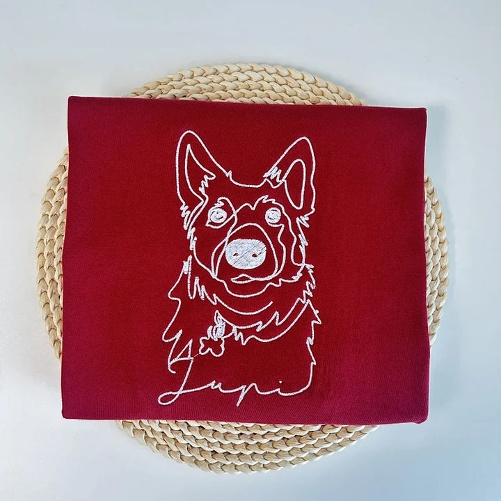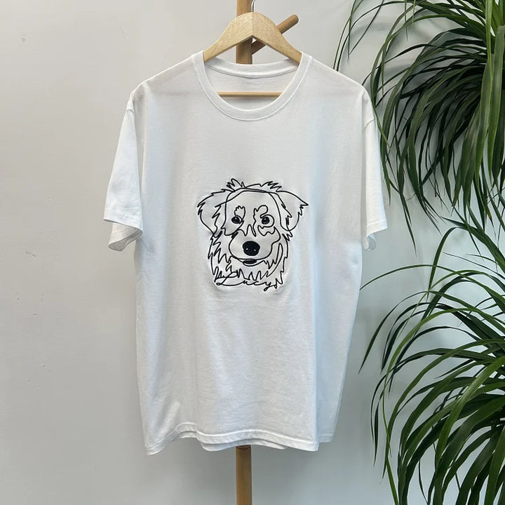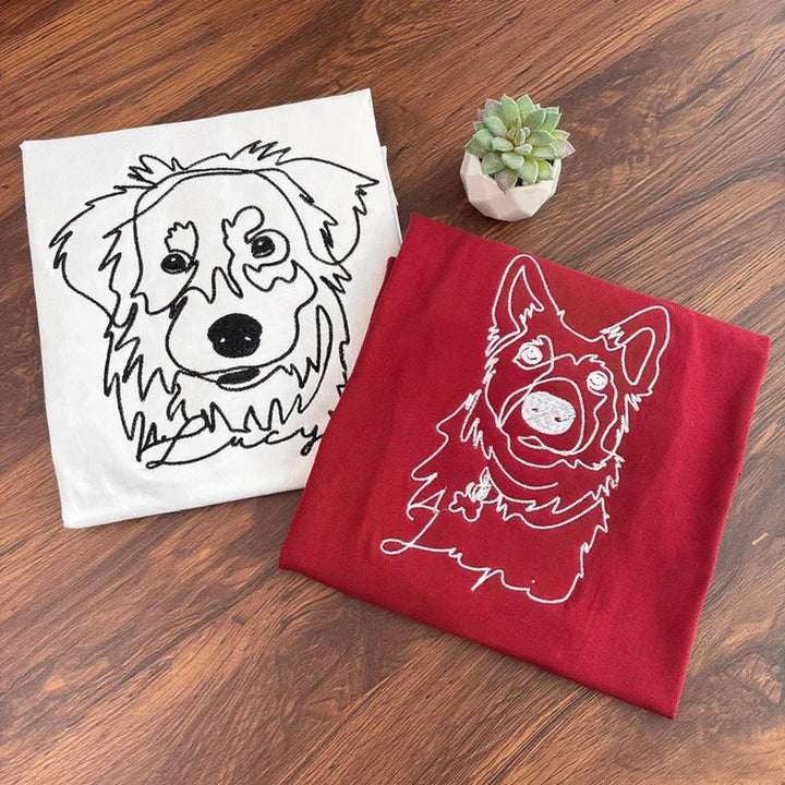 Celebrate your pet with a custom one-line embroidered portrait – a minimalist yet deeply personal piece, stitched from your favorite photo.