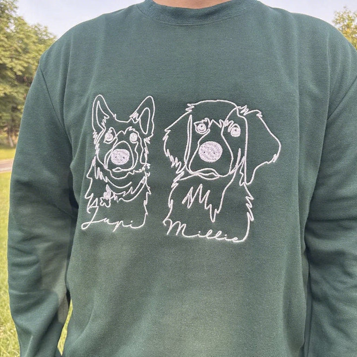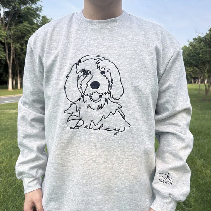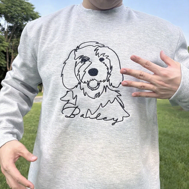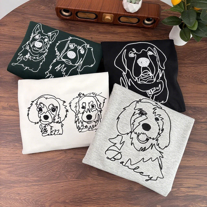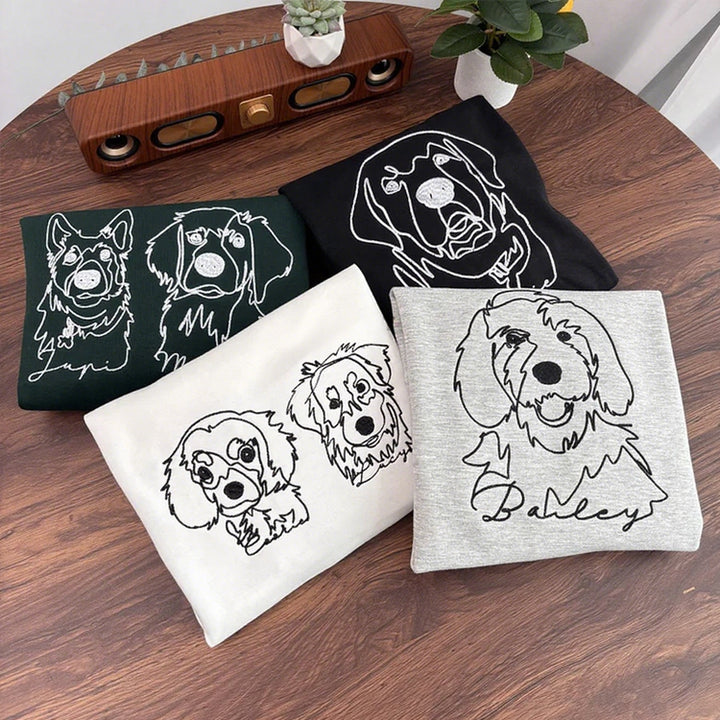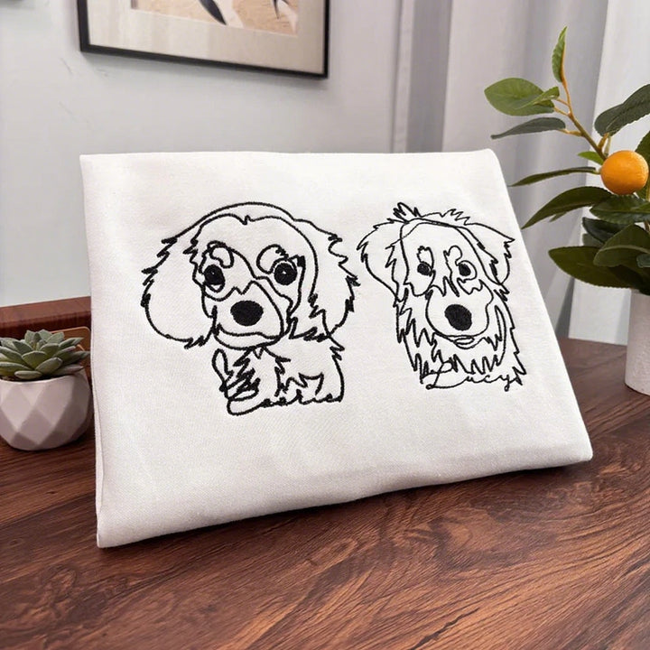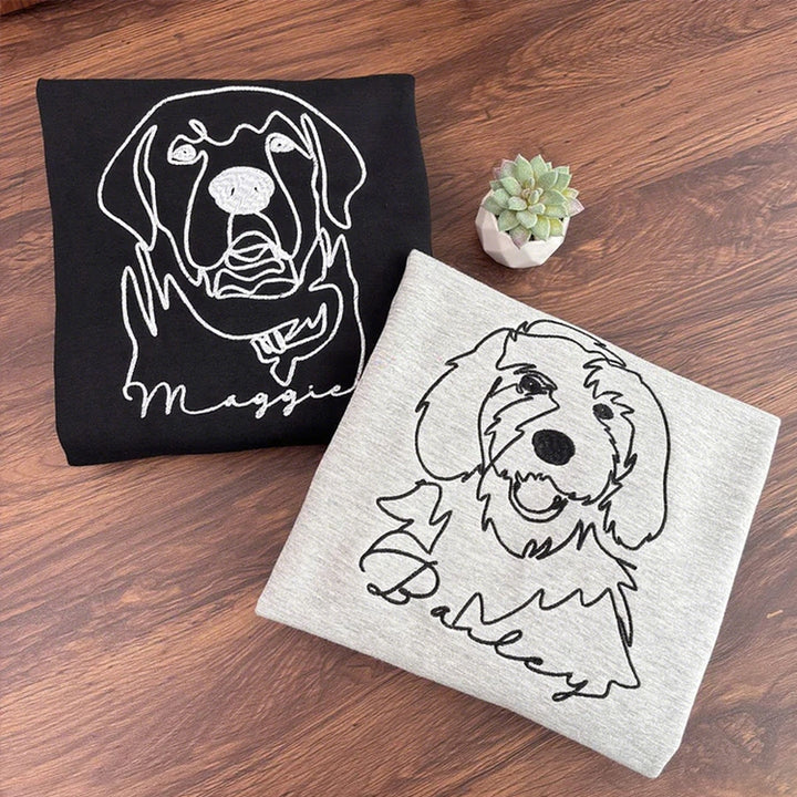 Custom Pet Outline Embroidered Hoodie – One-Line Stitch Art Sweatshirt/Tee