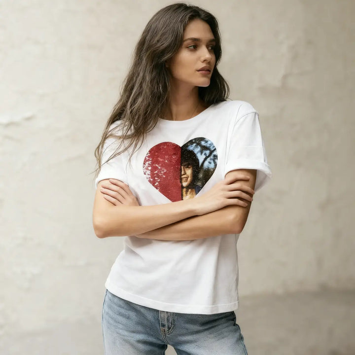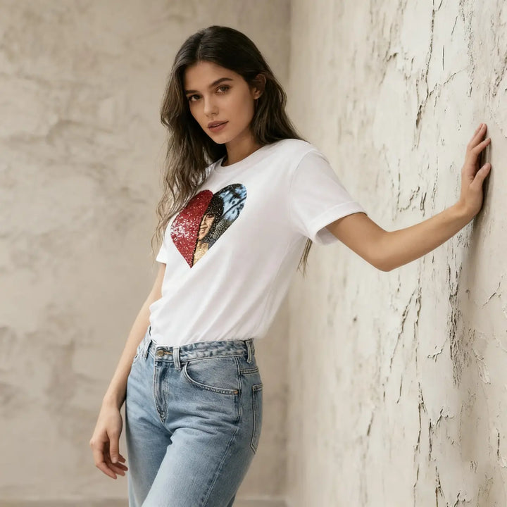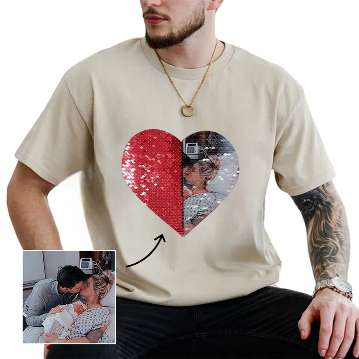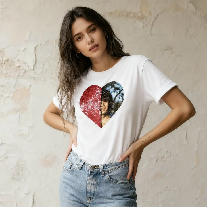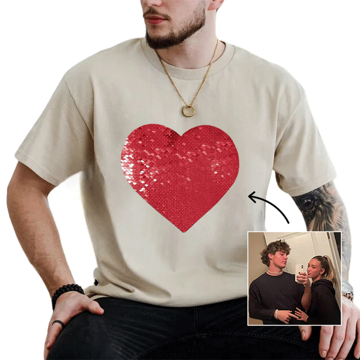 Make someone special feel extra loved with this unique unisex t-shirt featuring a fun DIY heart sequin design. Perfect gift for men and women of all sizes. Create one-of-a-kind looks with this customizable t-shirt, perfect for special events.