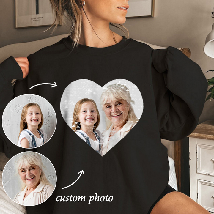 We can combine the people or pets in 2-3 photos into one photo, and then print them on the heart sequins.