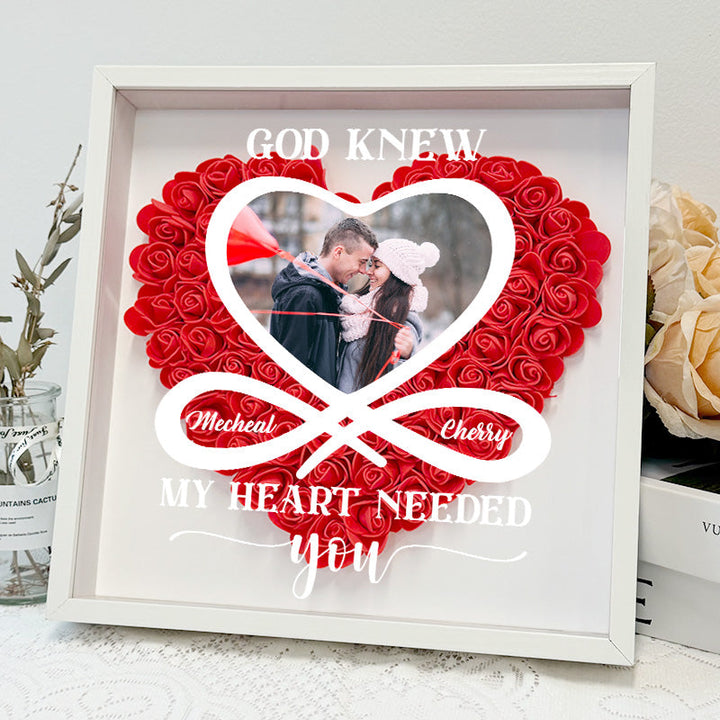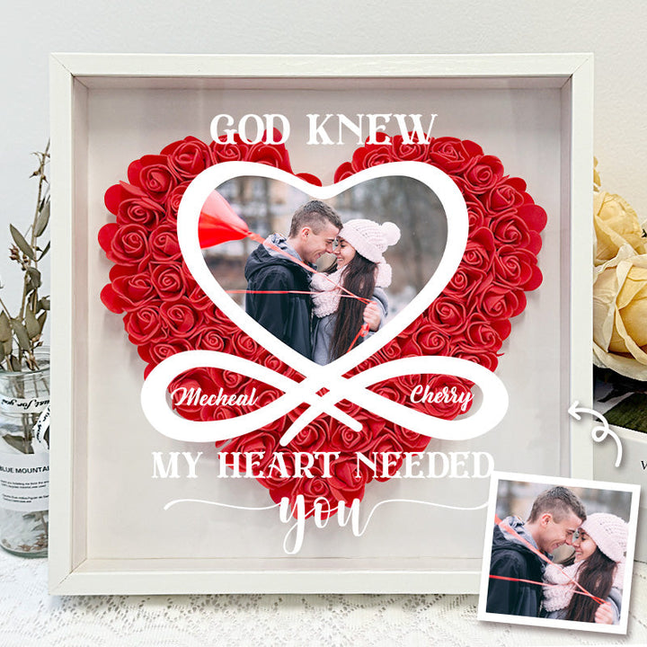Custom Photo God Knew My Heart Needed You Flower Shadow Box