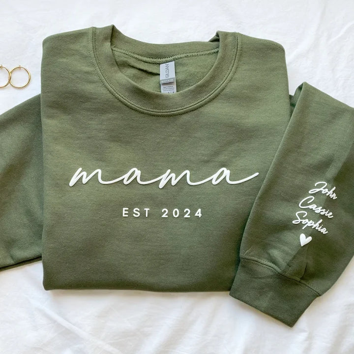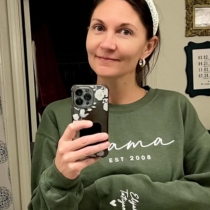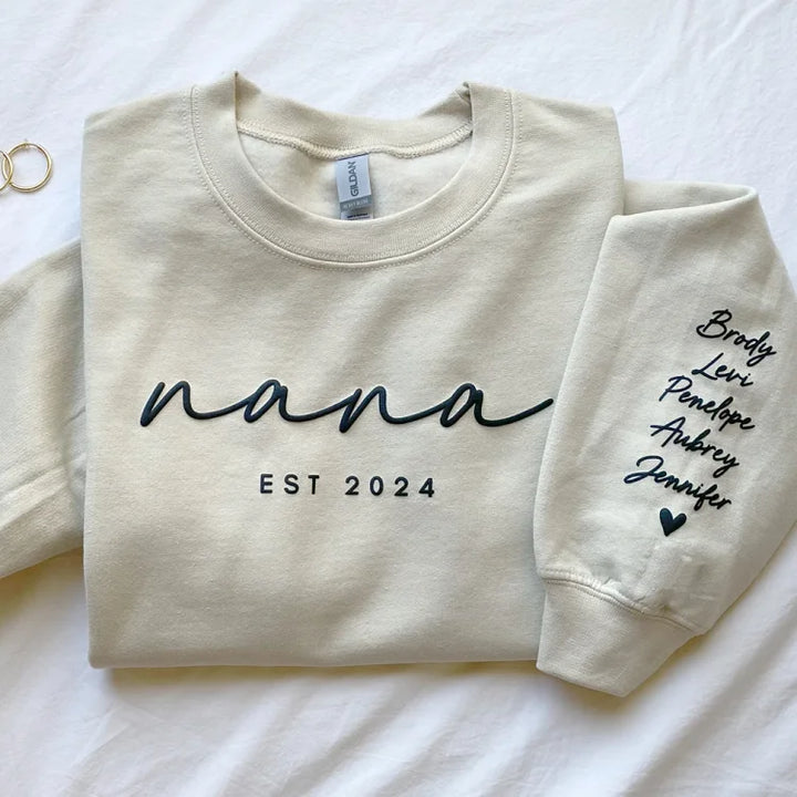 Custom Puff Print Sweatshirt Est Year with Kids Names on Sleeve