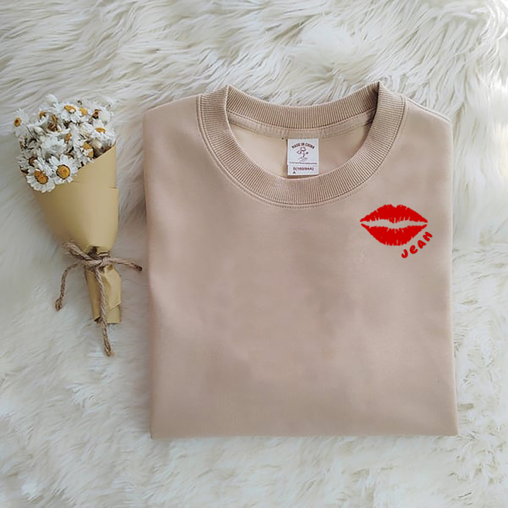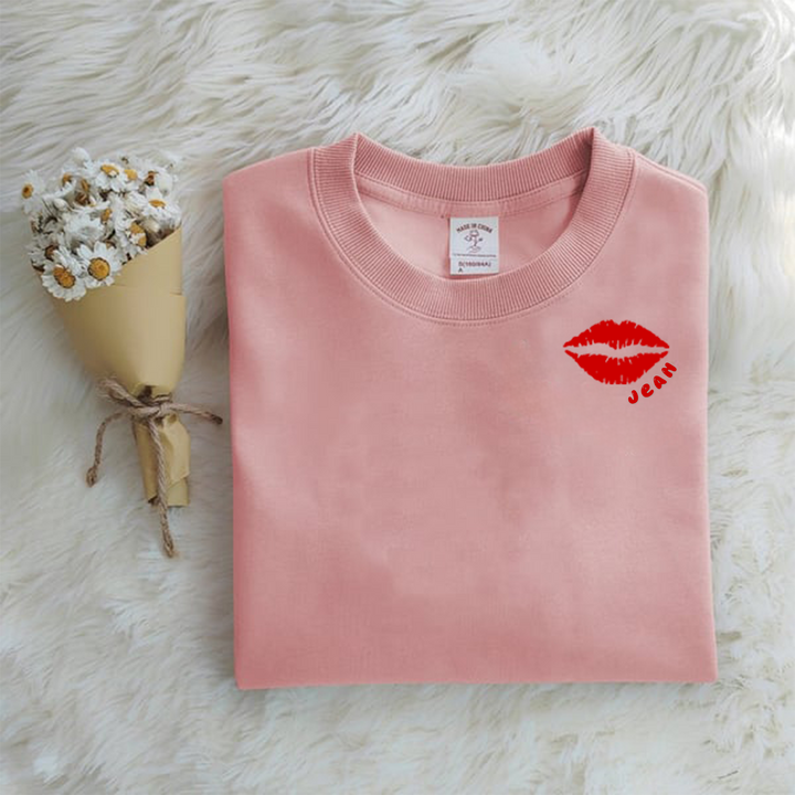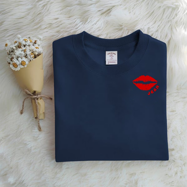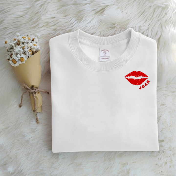 Custom Text Lip Print Embroidered T-shirt,Sweatshirt,Hoodie Valentine's Day Gift