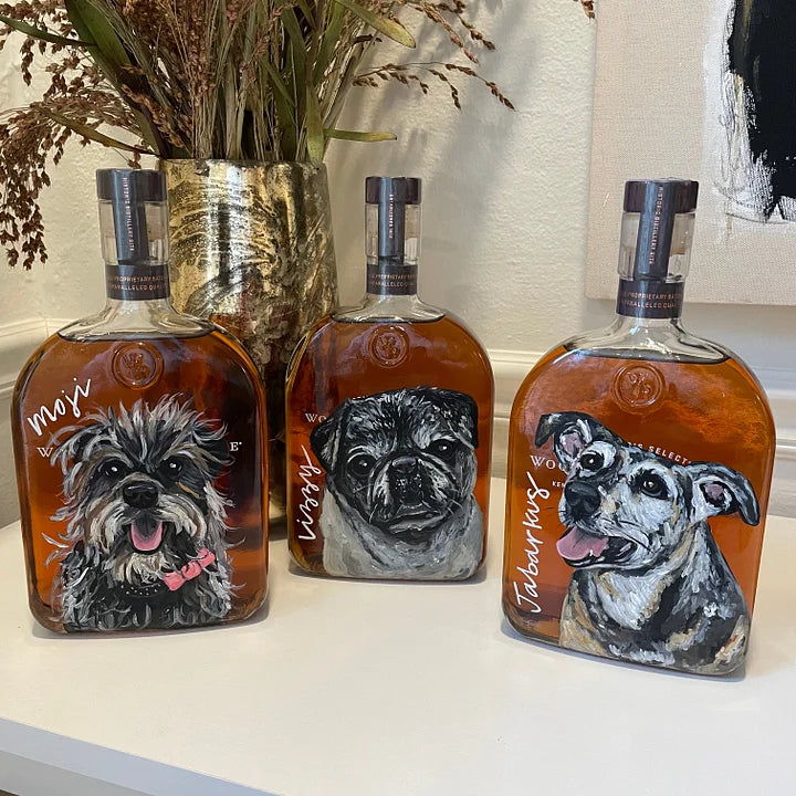 Crafted from premium glass and sealed with a cork stopper, this custom whiskey bottle is the perfect way to commemorate your pet's memory or celebrate their adorable presence in your life. The artist will carefully recreate your pet's likeness in vibrant colors and intricate detail, ensuring a stunning finished product that will be cherished for years to come.