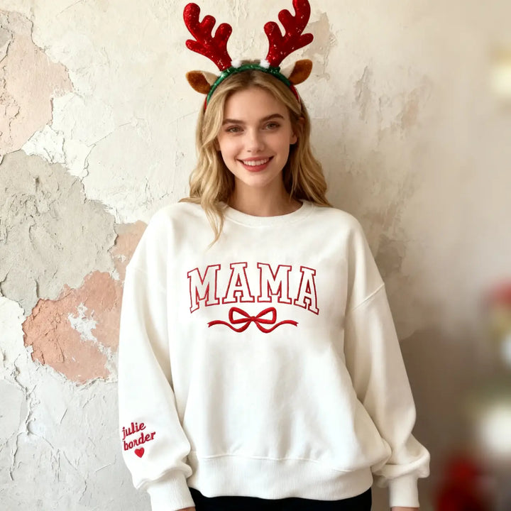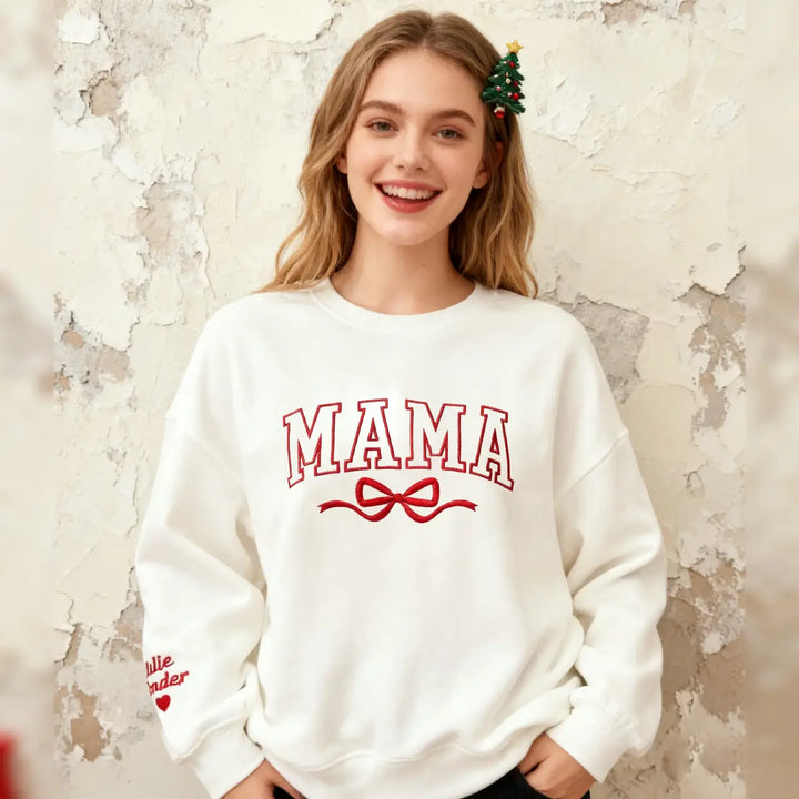 Embroidered Mama Bow Sweatshirt with Kids Name, Gifts for Mom
