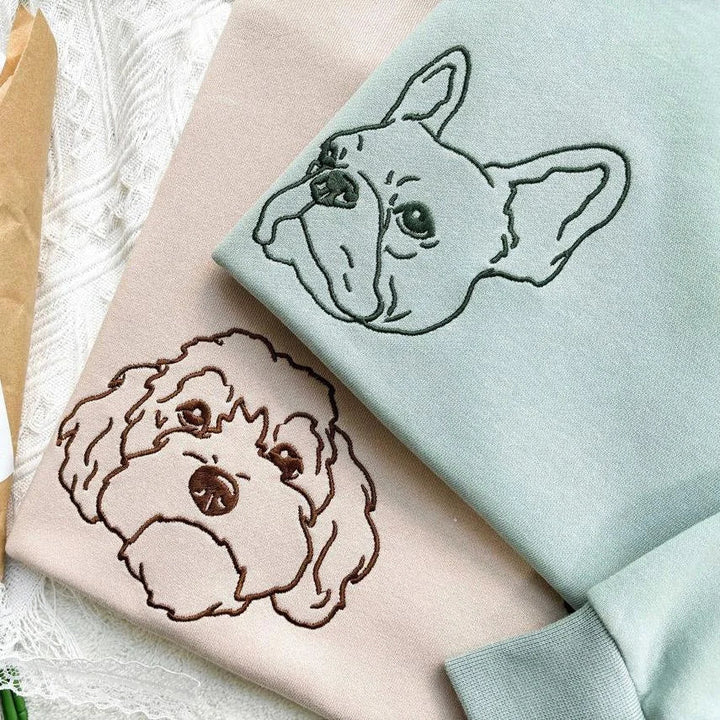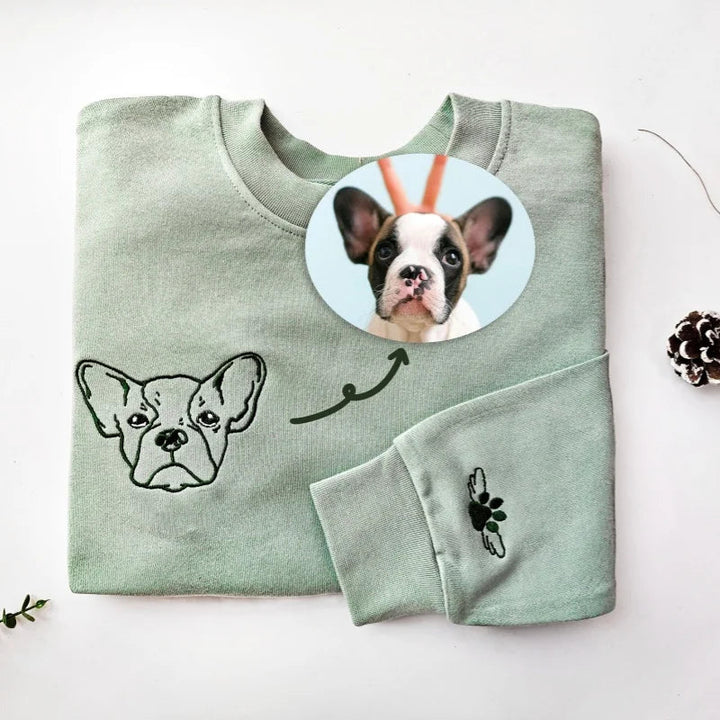 Embroidered Pet Face and Pet Name on Sleeve Sweatshirt for Pet Lovers