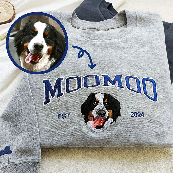 Embroidered Pet Portrait Photo Sweatshirt Custom Dog Hoodie T-shirt with Photo and Name