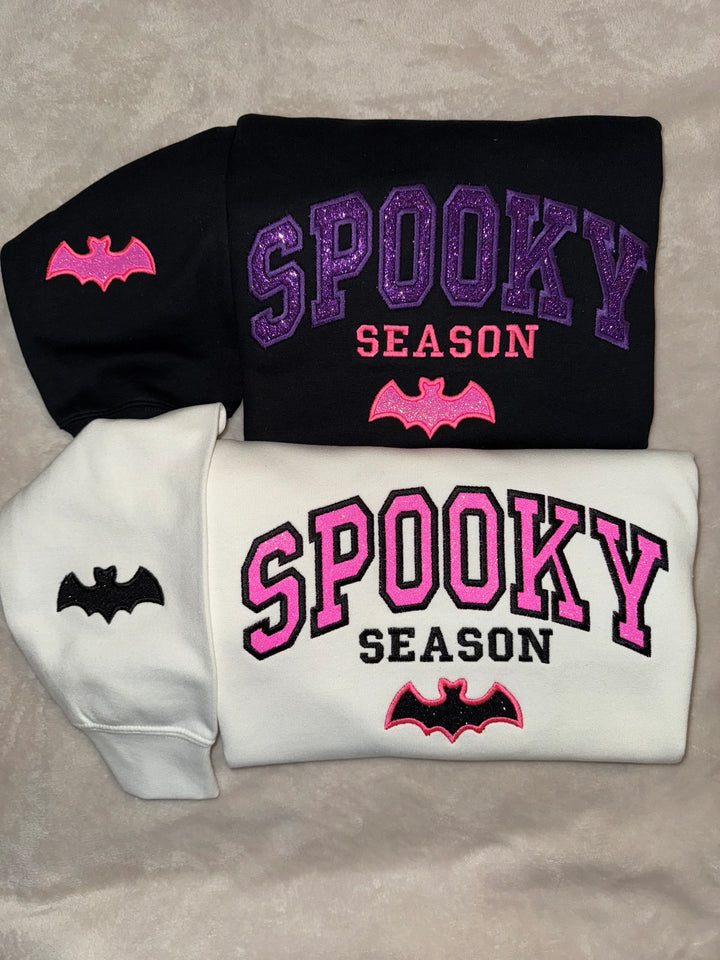 Embroidered Spooky Season Halloween Sweatshirt | Glitter Custom Fall Sweater