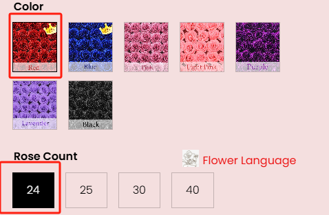 You place the order in two batches, buying 24 red flowers and 24 pink flowers respectively. Add the two orders to the shopping cart first and then place the order together, and there will be an automatic discount.