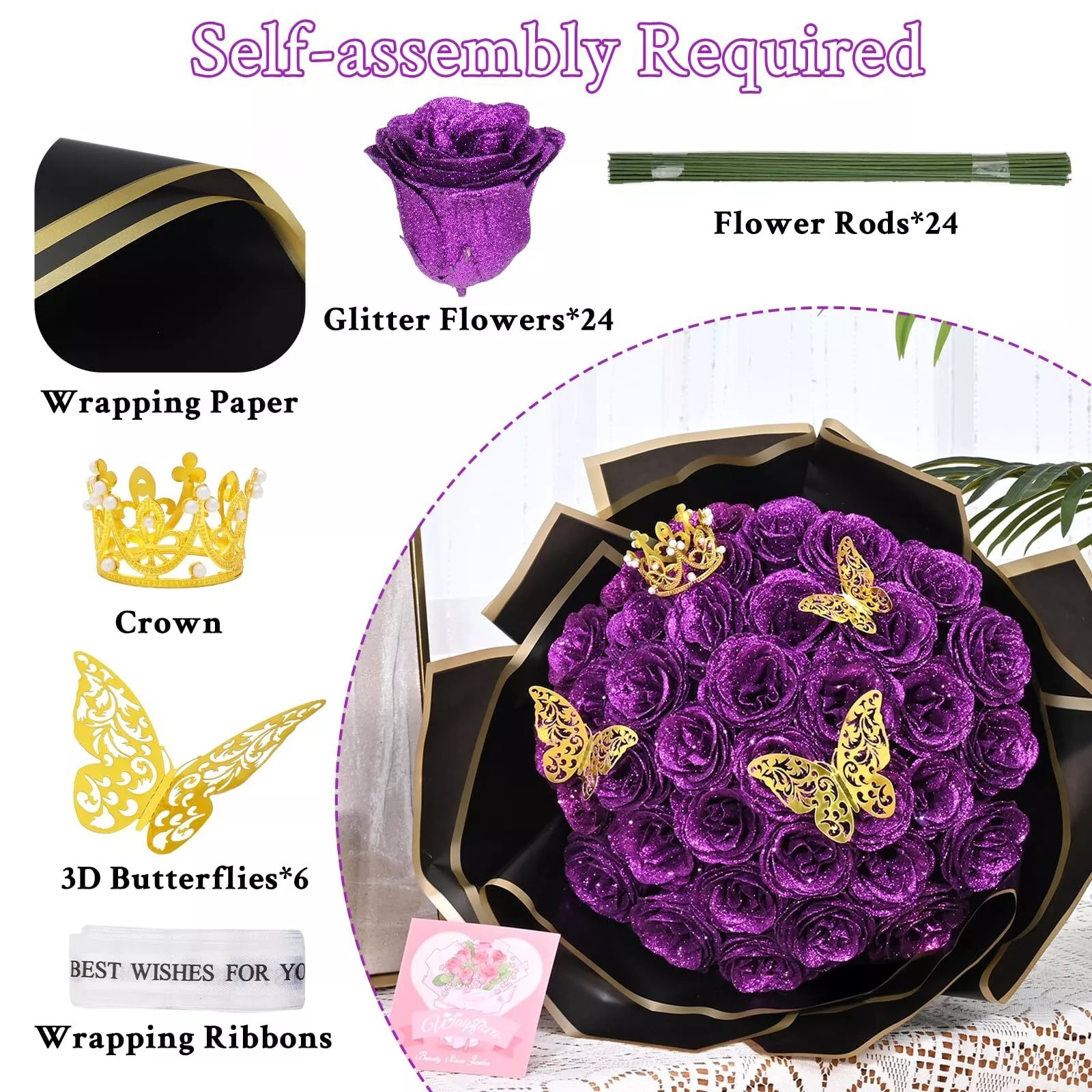 📦 Disassembled Elegance: Delivered with care, your Glitter Rose Flower Bouquet comes disassembled with all materials provided. Dive into the joy of creating something special for your loved one.
