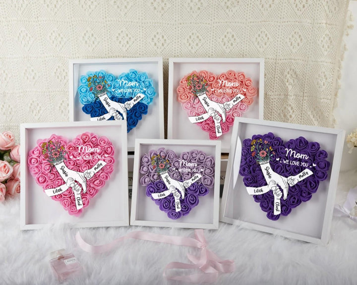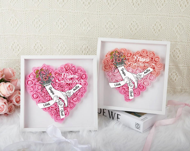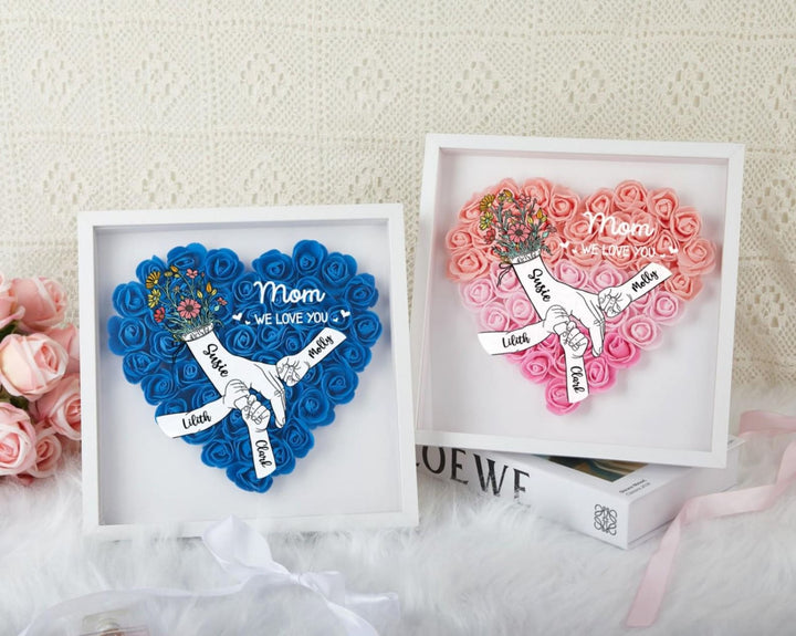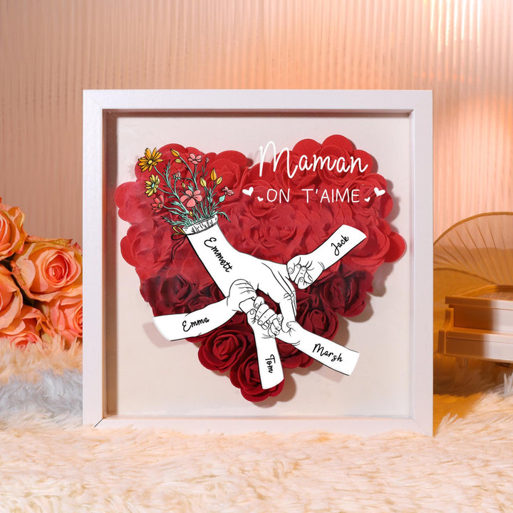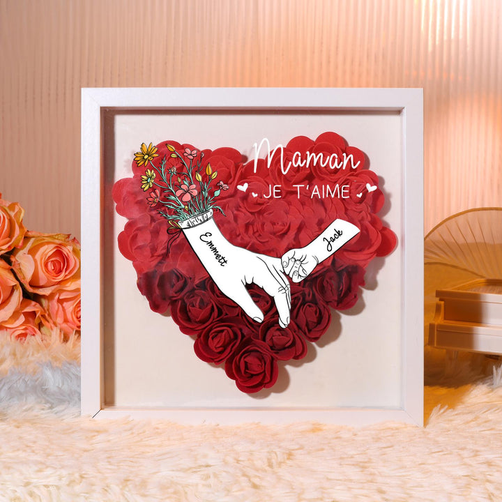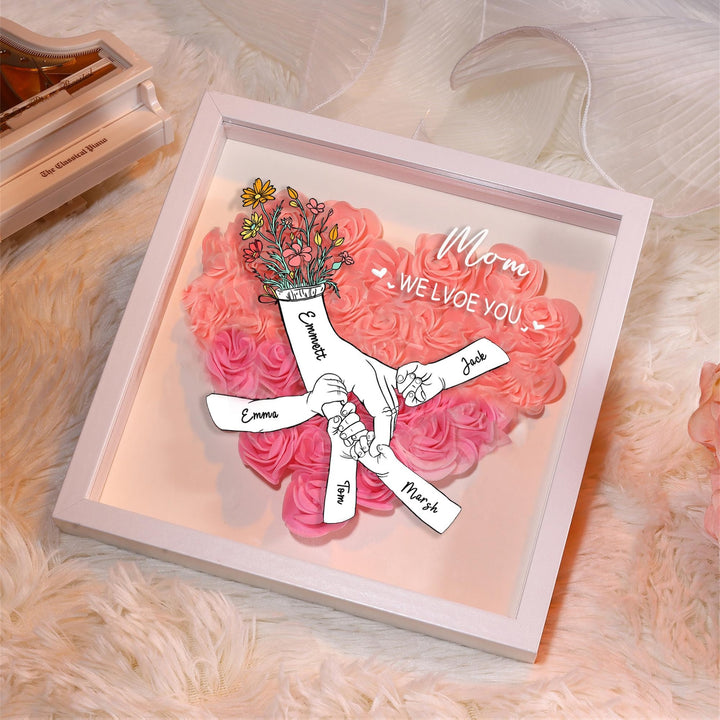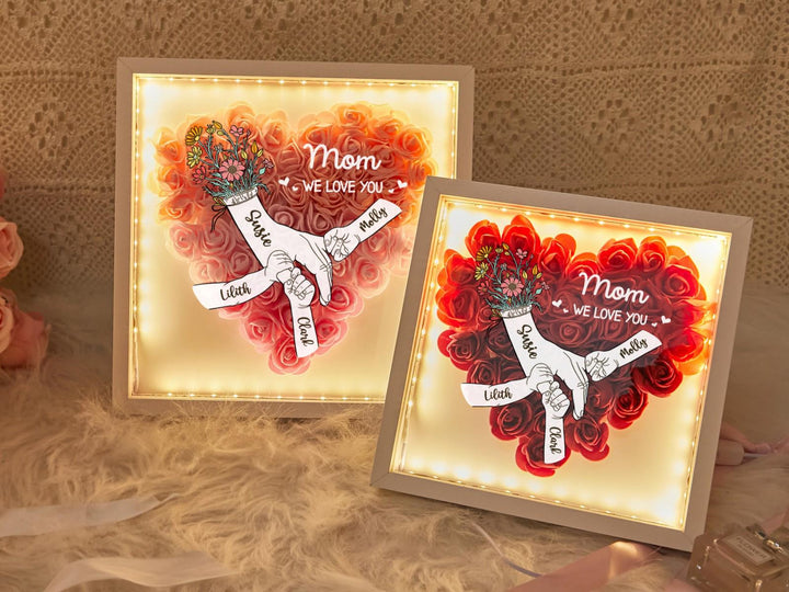 Family Love Blooms - Personalized Flower Shadow Box With Led Light
