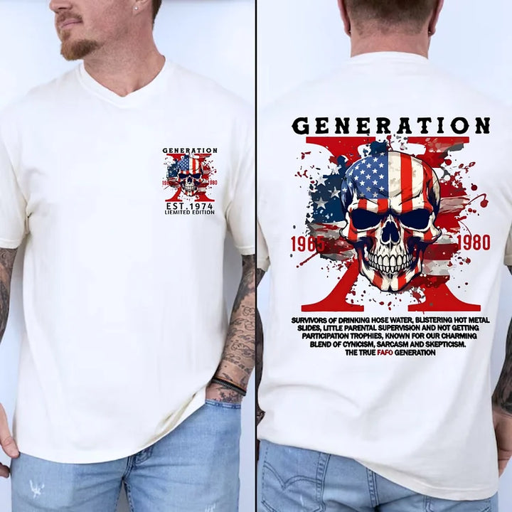 You are the trailblazers who experienced the era of cassette tapes and vinyl records, the witnesses of a time before the internet revolutionized our lives. You've not only observed the world's transformation but also shaped its future. To honor your unique journey, we present the Gen X Series Custom T-Shirts— especially for you.