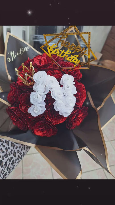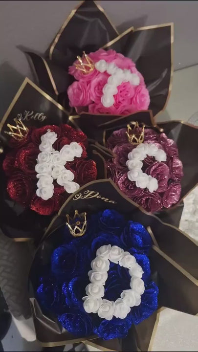 Glitter Rose Bouquet, Personalized Glittery initial Eternal Rose Bouquet,personalized letter, birthday, Valentine's Day