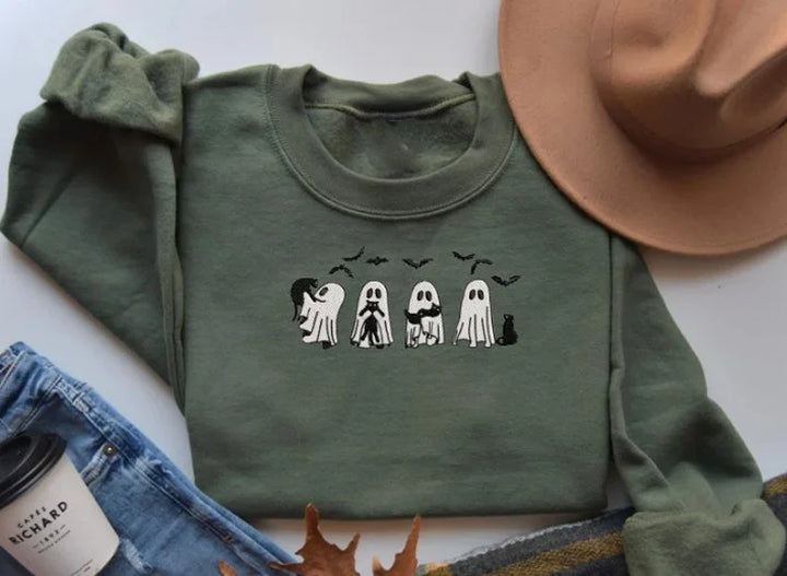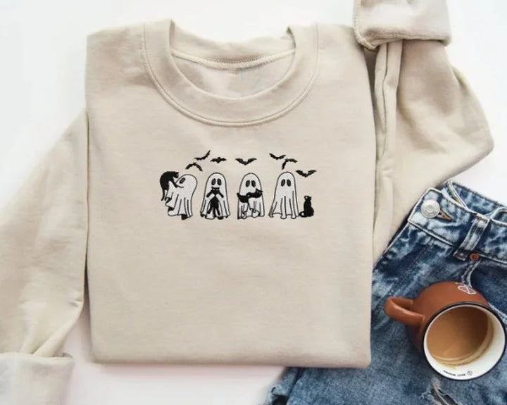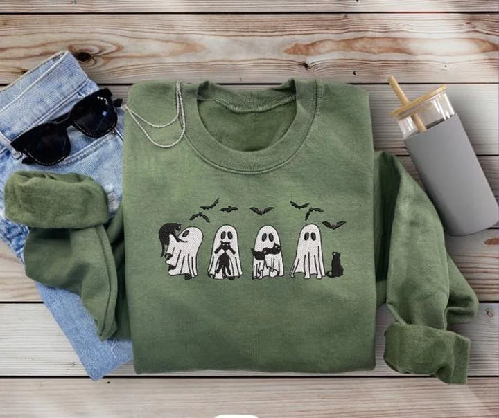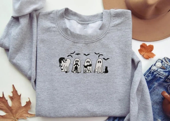 👻👻 Halloween Embroidered Sweatshirt – Halloween Unique Design – Ghost Themed – Fall Crewneck – Custom Embroidered Sweatshirt – Spooky Season Apparel.