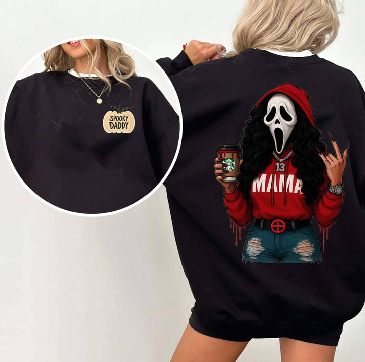 Halloween Ghost Face Spooky Mama 2 Sides Sweatshirt, Cool Mama Halloween Hoodie