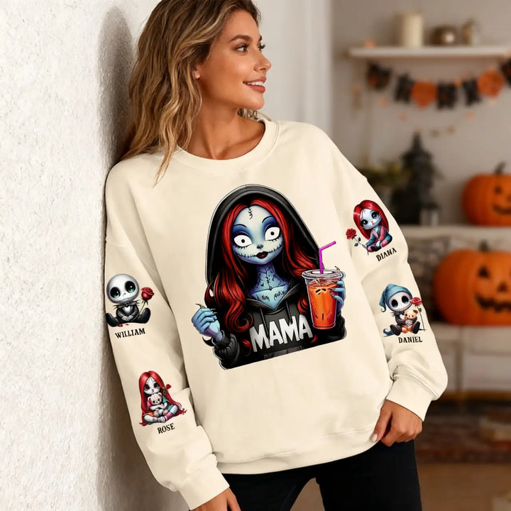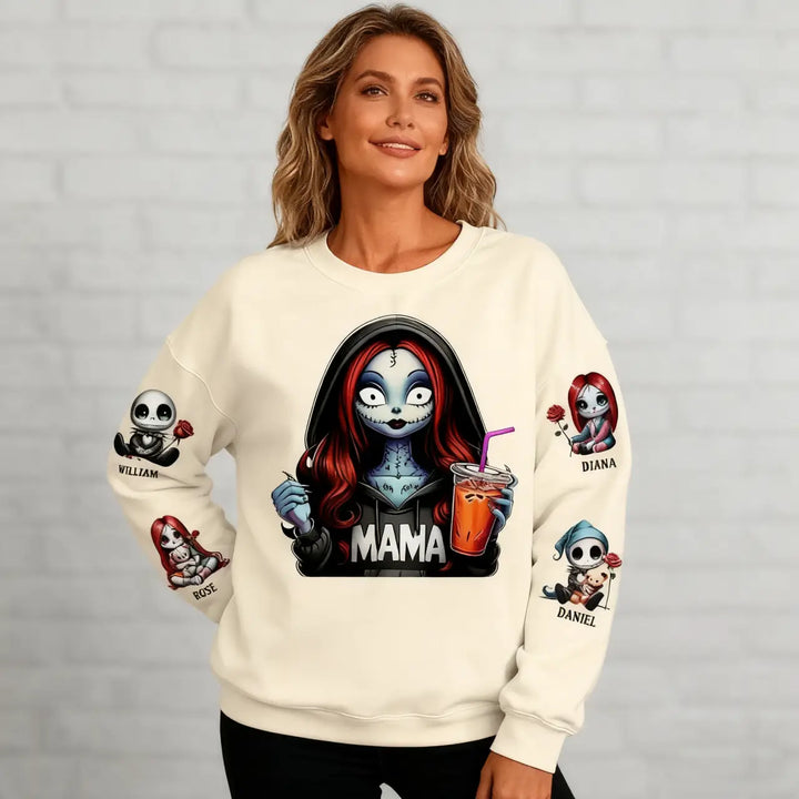Custom Horror MAMA Sweatshirt with Kid's Names on the Sleeve