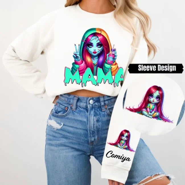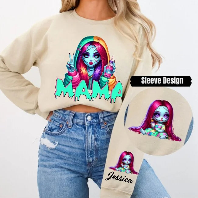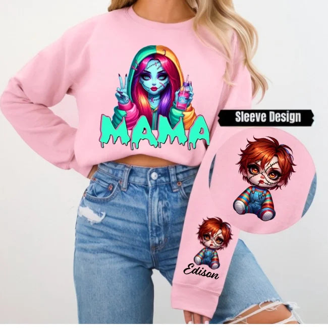Horror MAMA Sweatshirt with Kid's Names on the Sleeve